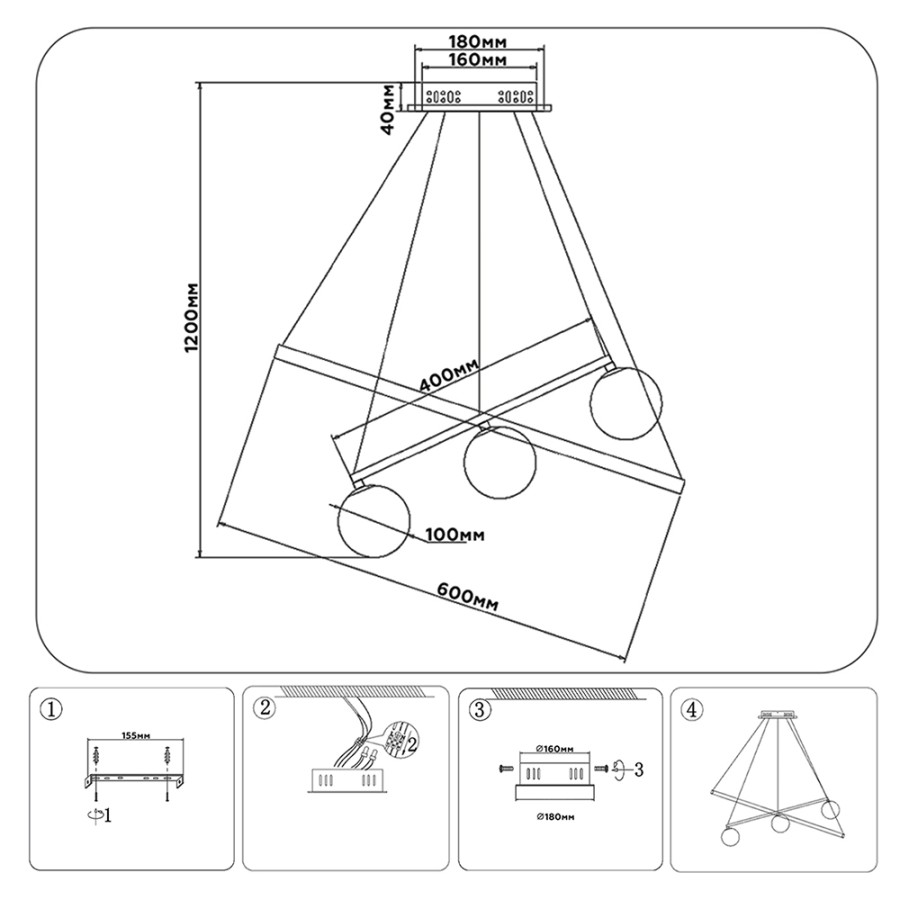 Конструкция светильника предусматривает применение 6 ламп с цоколем G9 / Встроенный источник, общая мощность 229 Вт, что позволяет осветить 35 м2.