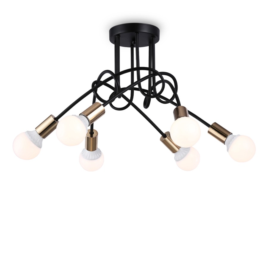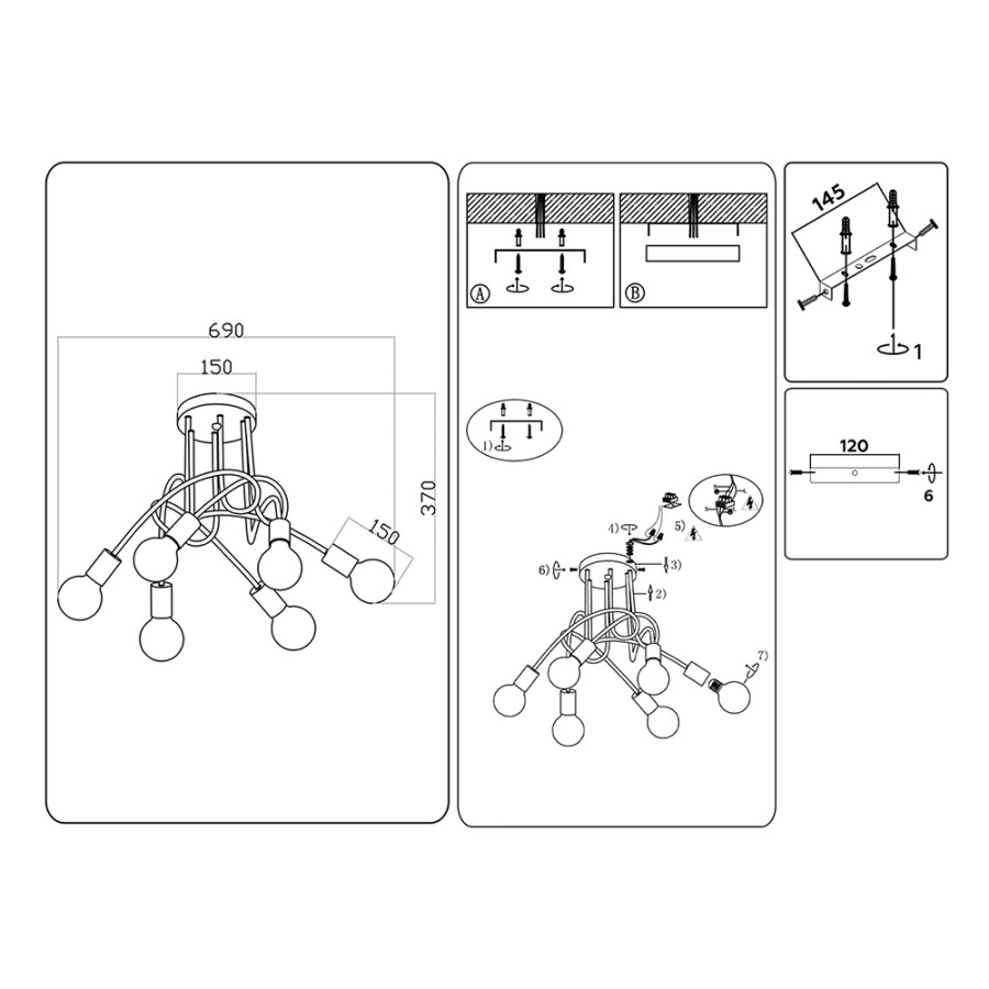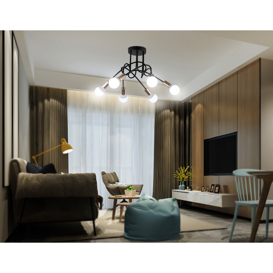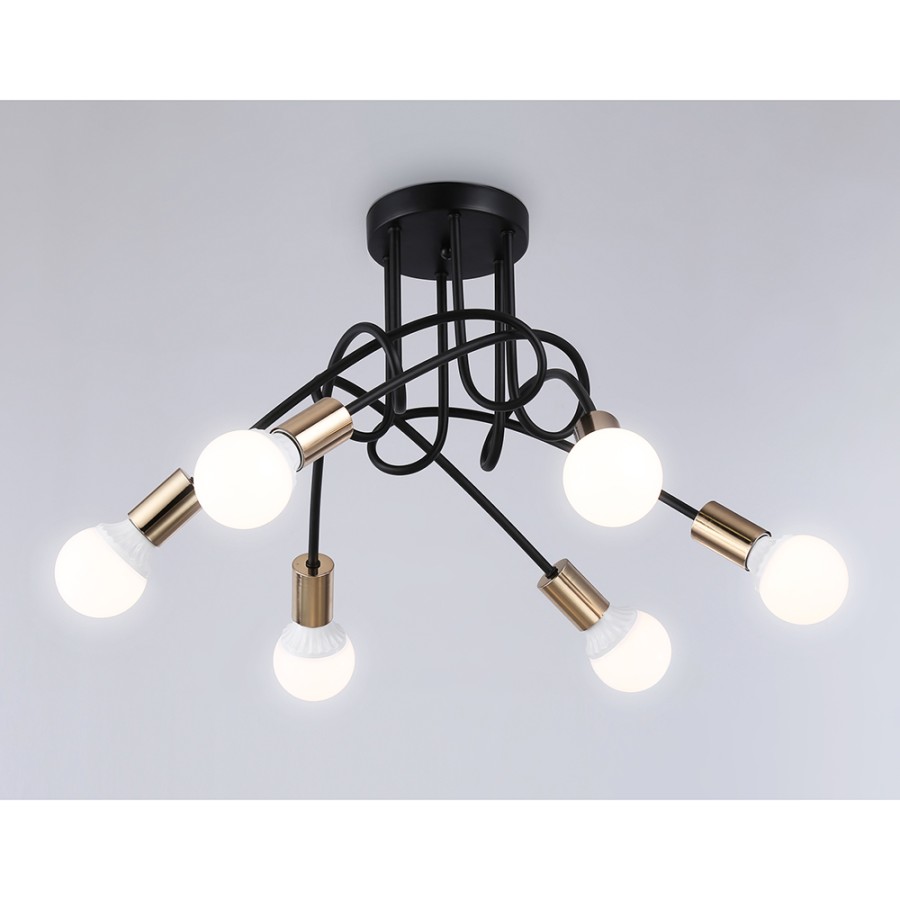 Конструкция светильника предусматривает применение 6 ламп с цоколем E27, общая мощность 360 Вт, что позволяет осветить 26 м2.