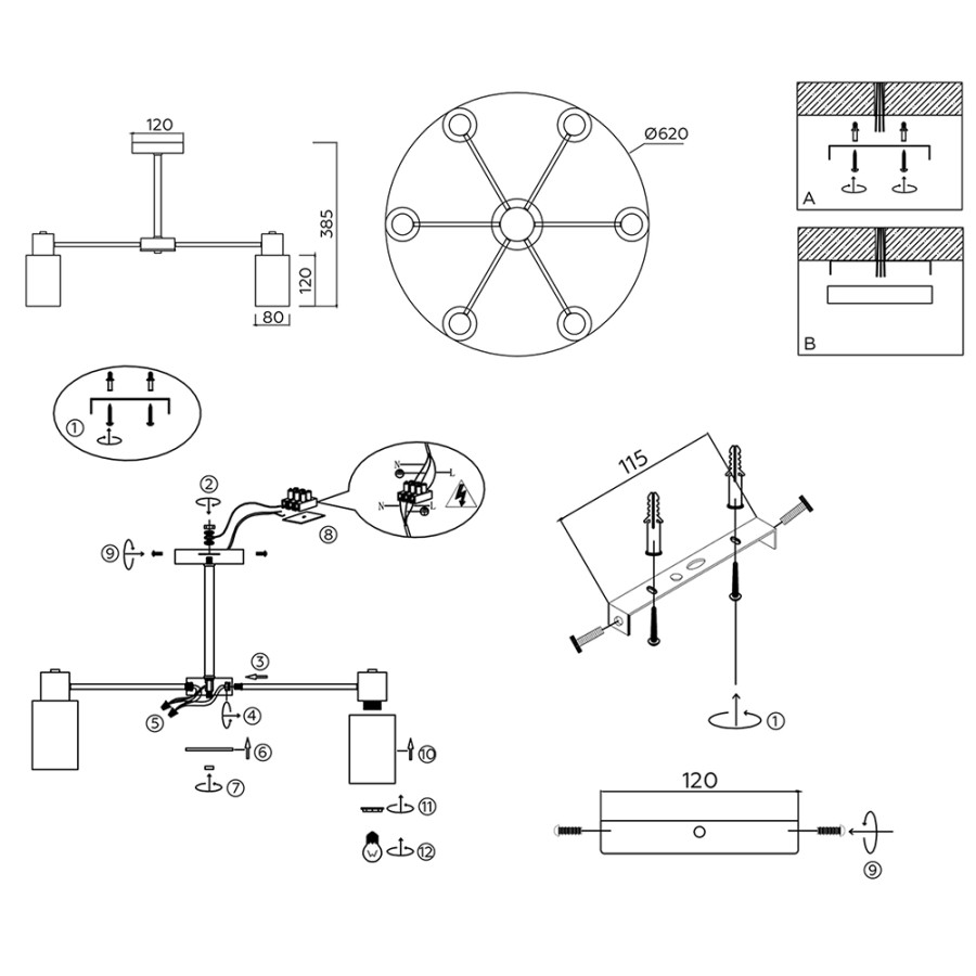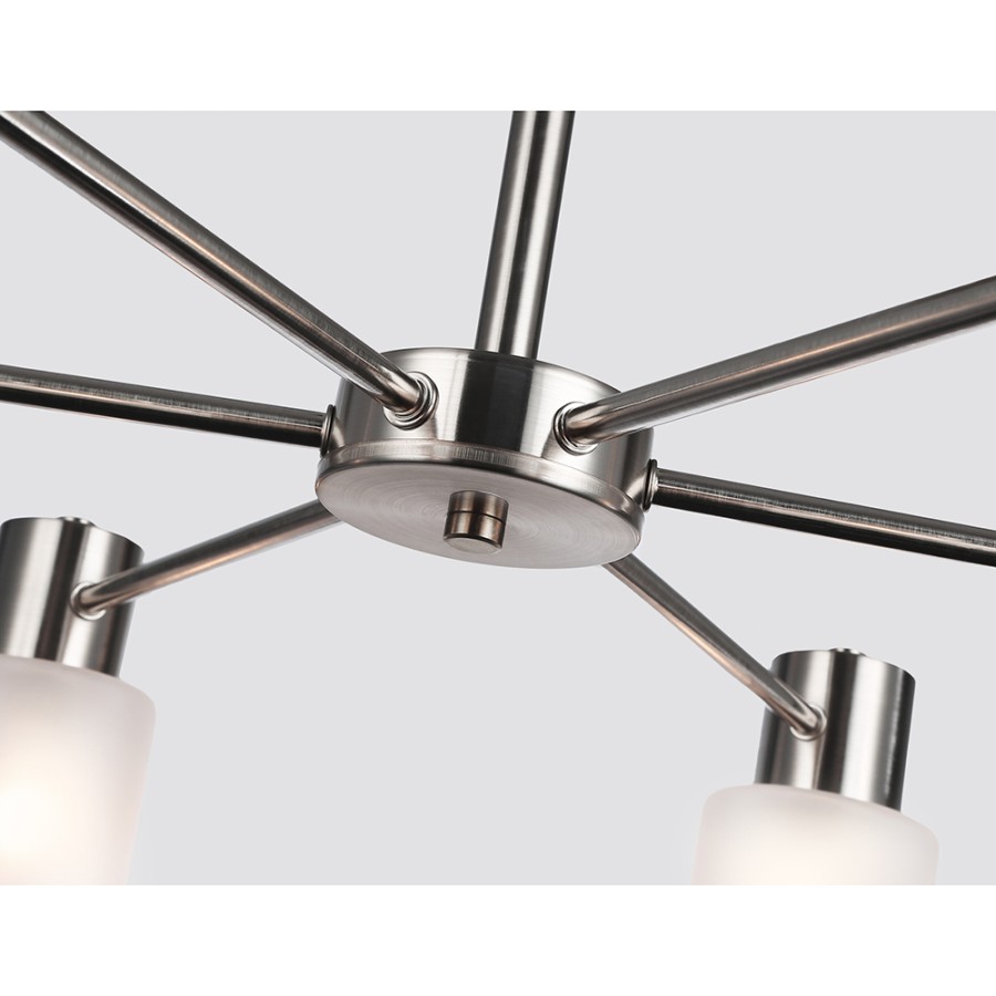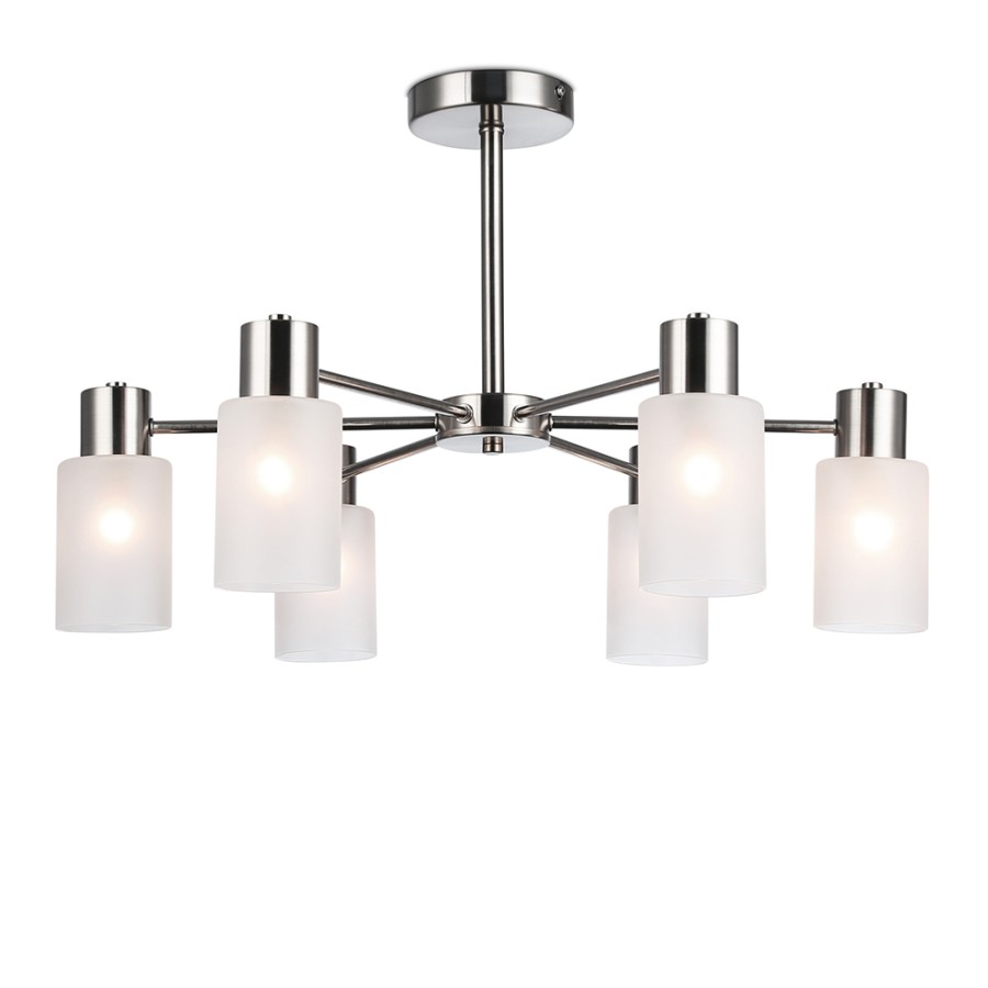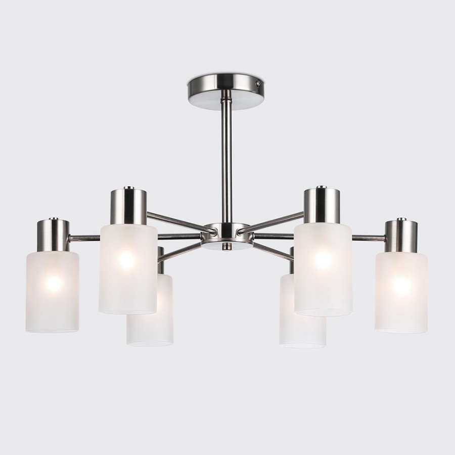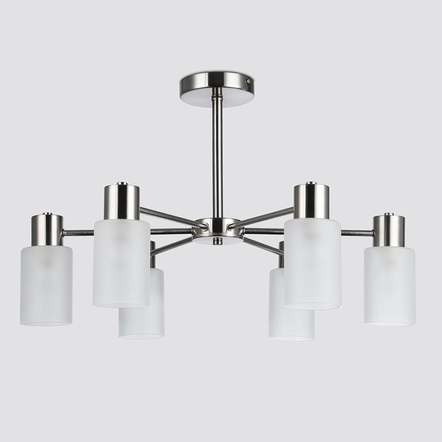Конструкция светильника предусматривает применение 6 ламп с цоколем E14, общая мощность 240 Вт, что позволяет осветить 18 м2.