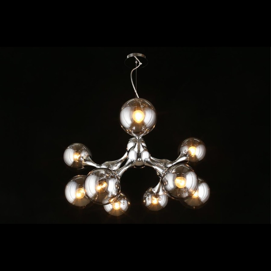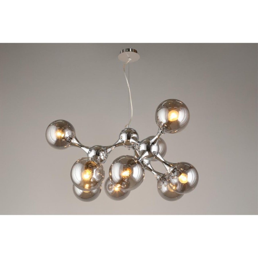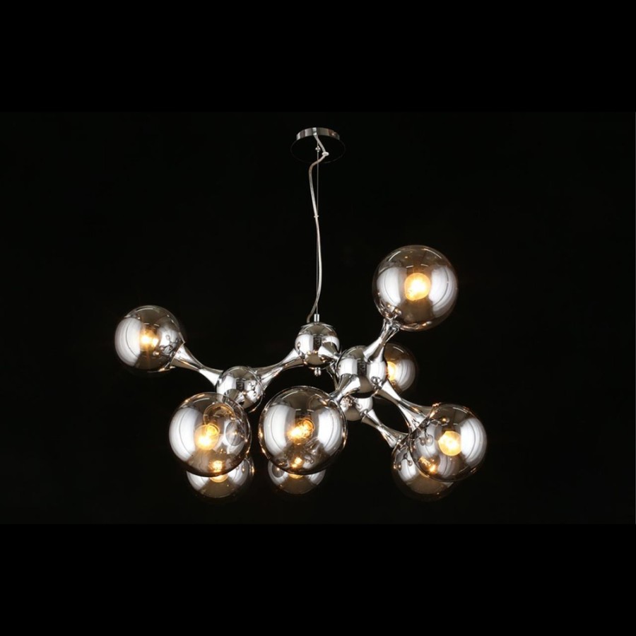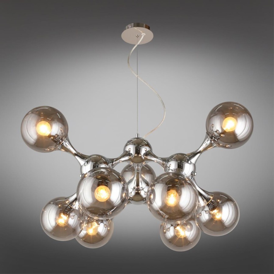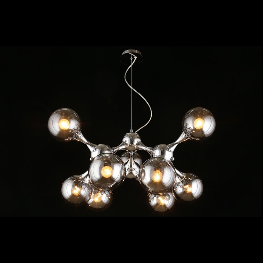 Конструкция светильника предусматривает применение 9 ламп с цоколем E14, общая мощность 360 Вт, что позволяет осветить 26 м2.