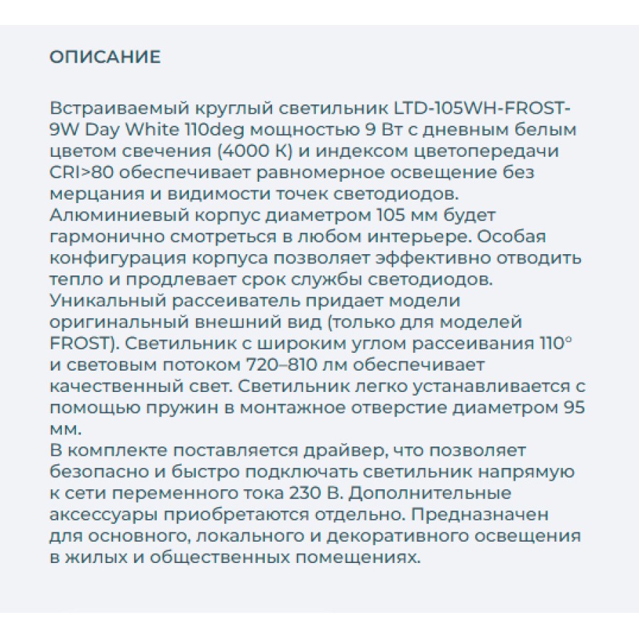 Светильник точечный Arlight LTD-105WH-FROST-9W Day White 110deg 021492