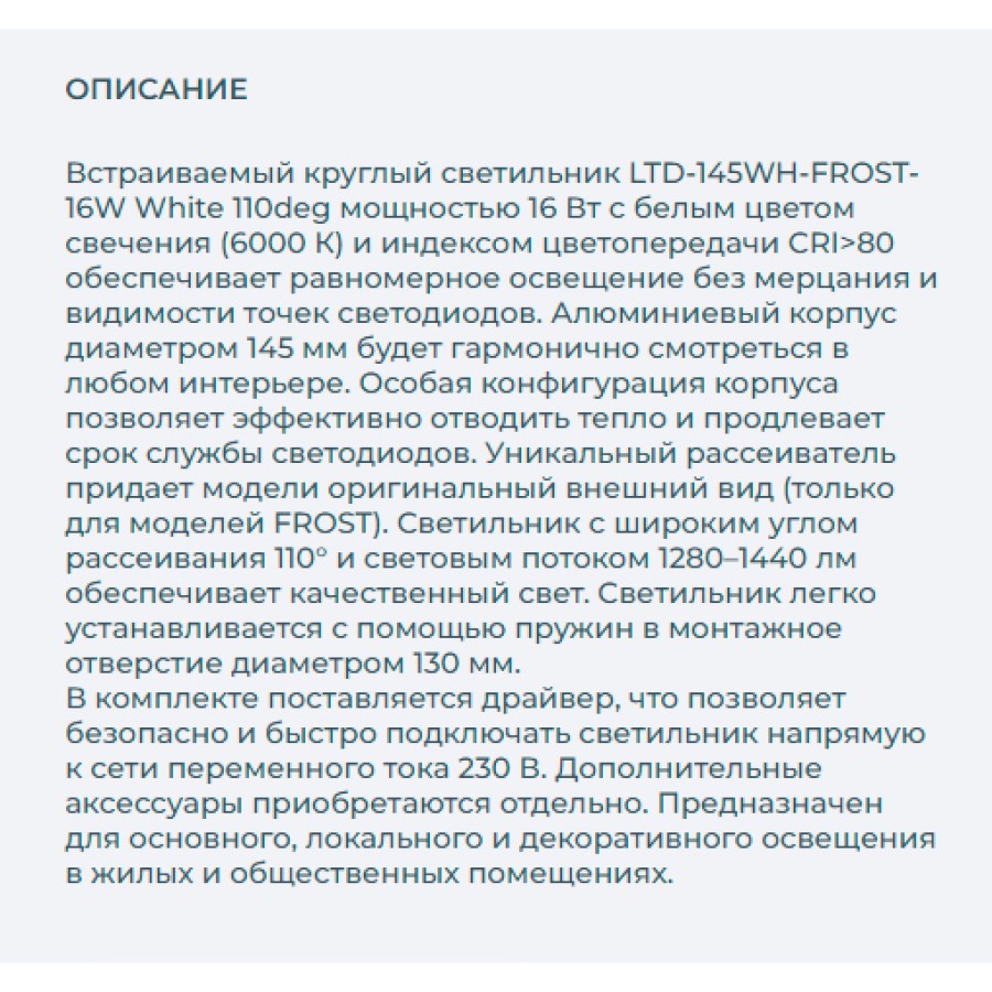 Светильник точечный Arlight LTD-145WH-FROST-16W White 110deg 021493