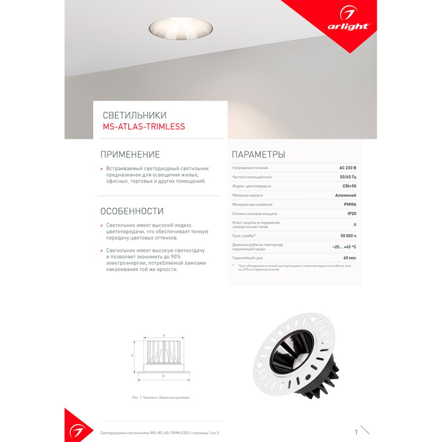 Светильник точечный Arlight MS-ATLAS-TRIMLESS-R70-12W Warm3000 036105