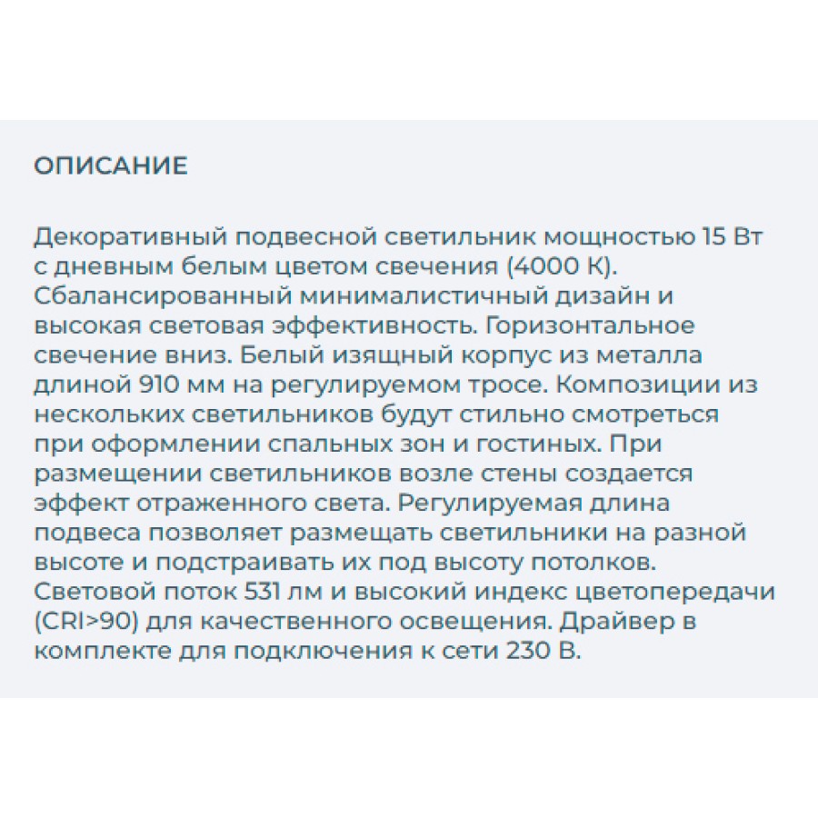 Модель Arlight SP-UMBRA-HANG-H-L900-15W Day4000 036943 обладает мощностью 15 Вт и может осветить 7 м2, цветовая температура - 4000k (нейтральный белый). Лампочки входят в комплект поставки. Интернет-магазин Обстановка.ру предлагает купить освещение Arlight ARLIGHT_036943 по цене 11312 руб. с доставкой по Москве и всей России.