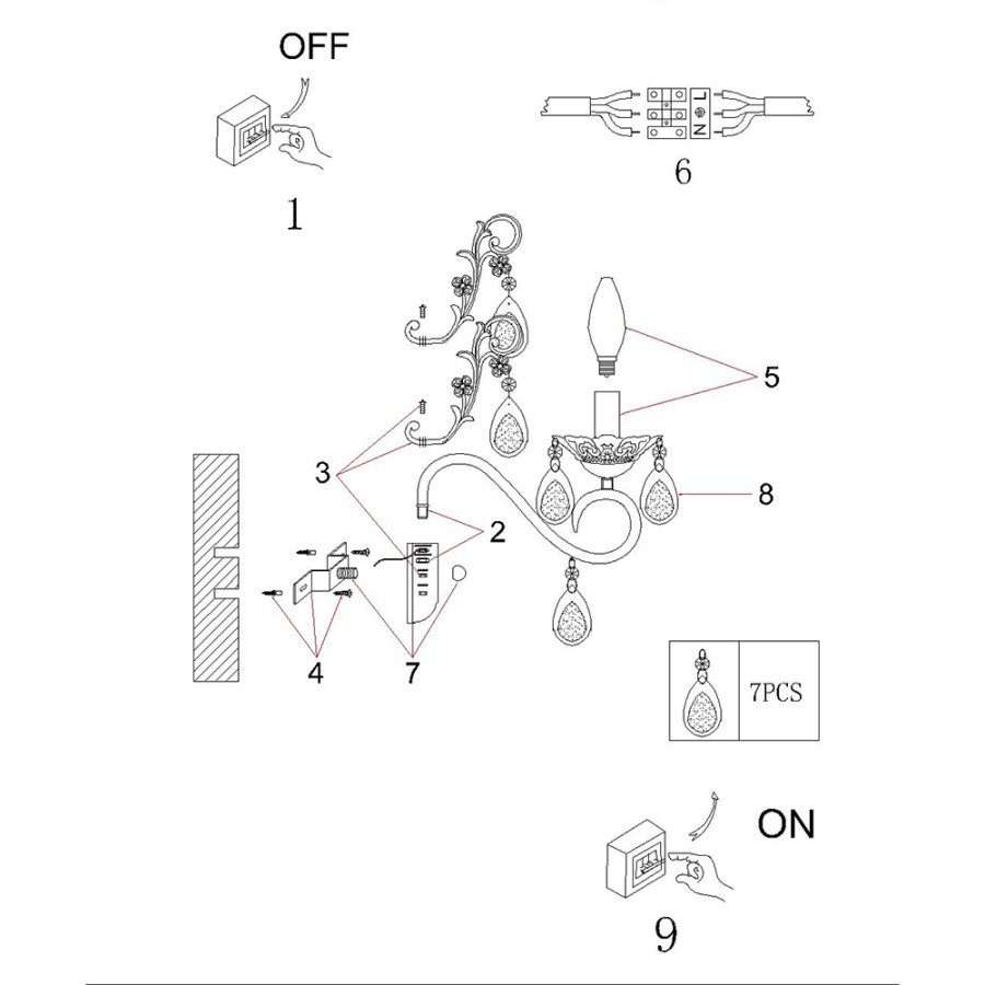 Конструкция светильника предусматривает применение 1 лампы с цоколем E14, общая мощность 60 Вт, что позволяет осветить 5 м2.