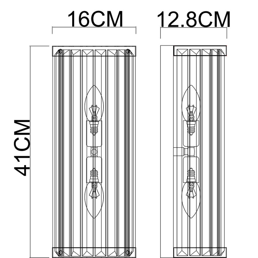 Конструкция светильника предусматривает применение 2 ламп с цоколем E14, общая мощность 80 Вт, что позволяет осветить 6 м2.