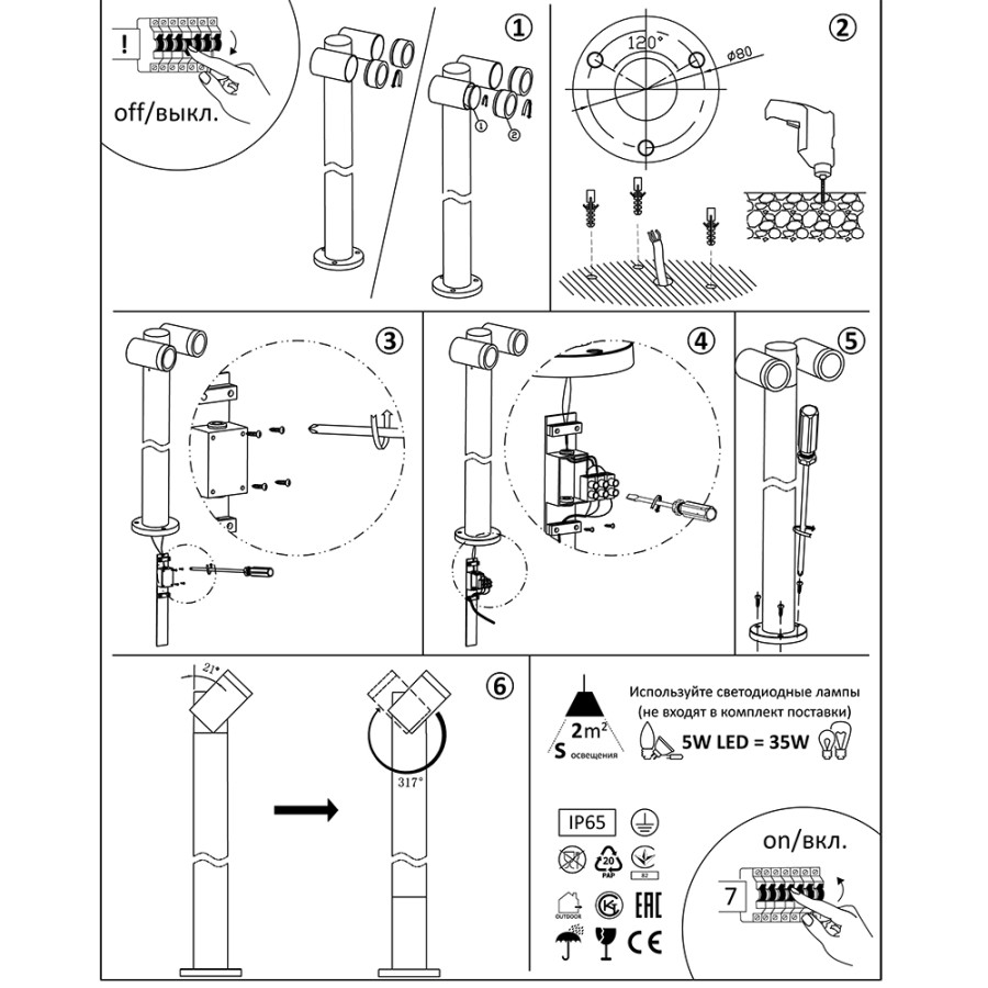 Конструкция светильника предусматривает применение 2 ламп с цоколем GU10, общая мощность 70 Вт.