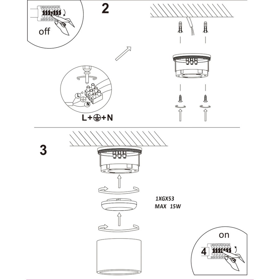Конструкция светильника предусматривает применение 1 лампы с цоколем GX53, общая мощность 15 Вт.