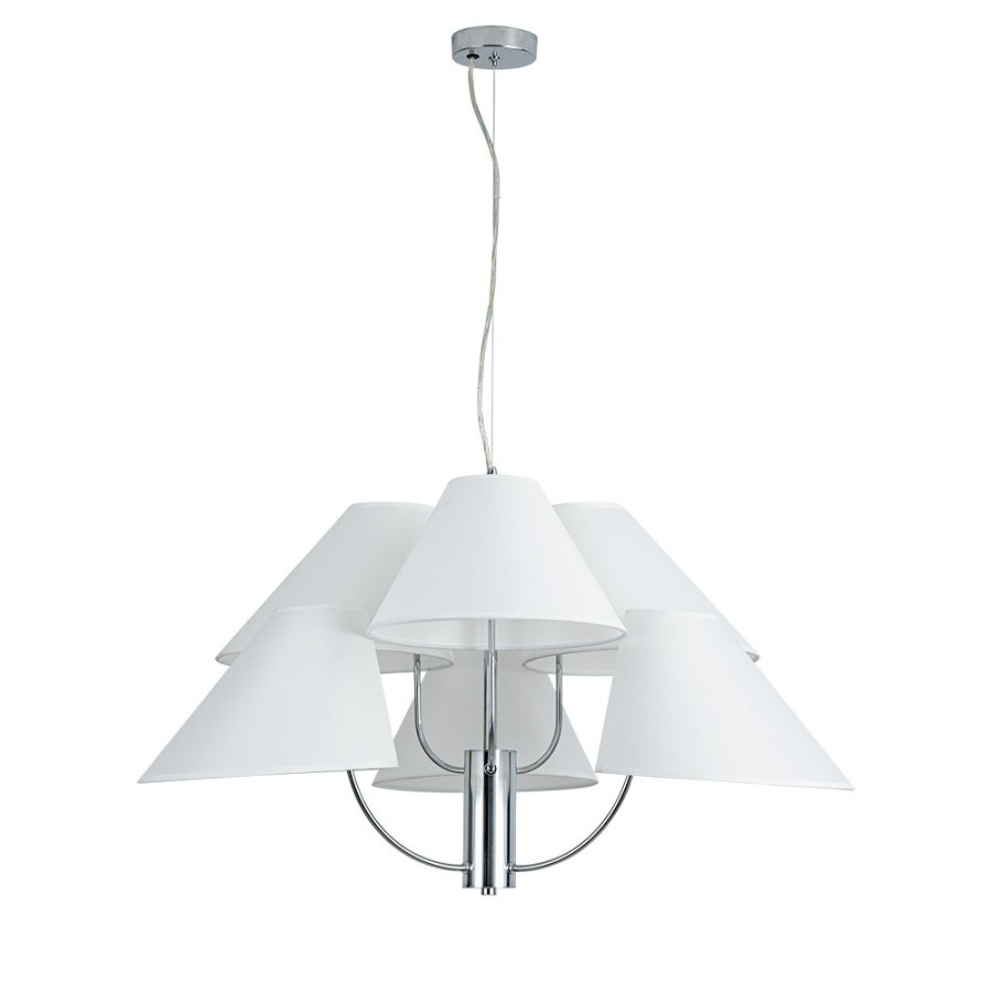 Конструкция светильника предусматривает применение 6 ламп с цоколем E14, общая мощность 240 Вт, что позволяет осветить 18 м2.