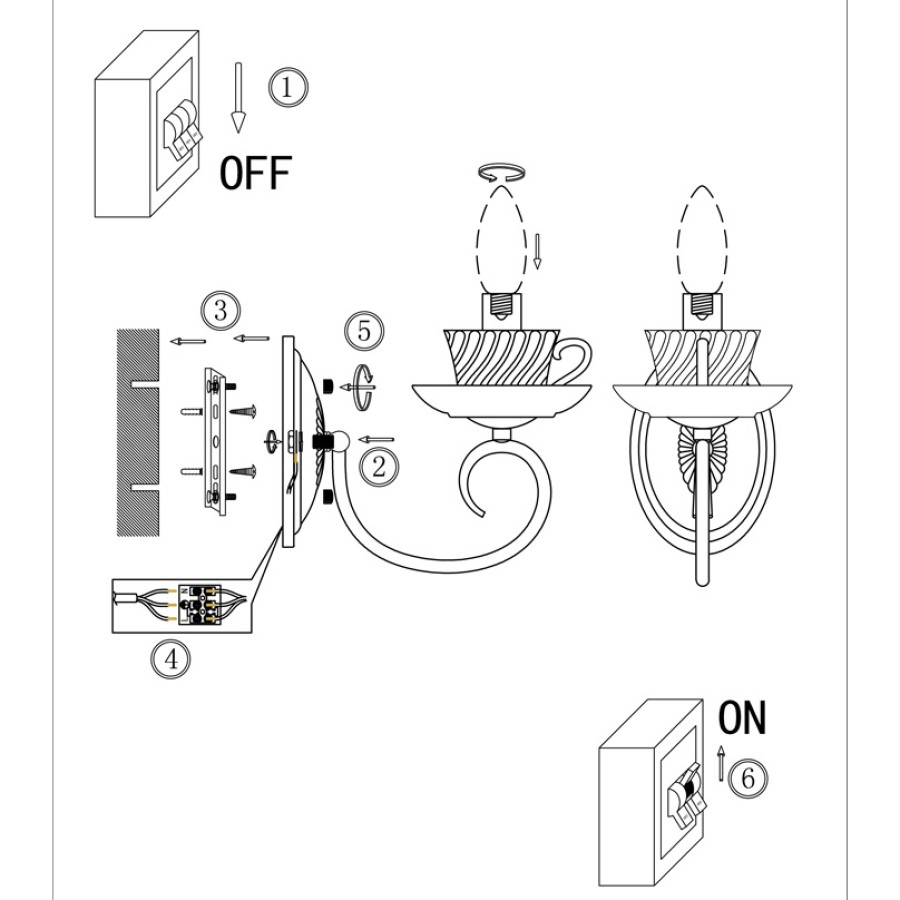 Конструкция светильника предусматривает применение 1 лампы с цоколем E14, общая мощность 40 Вт, что позволяет осветить 3 м2.