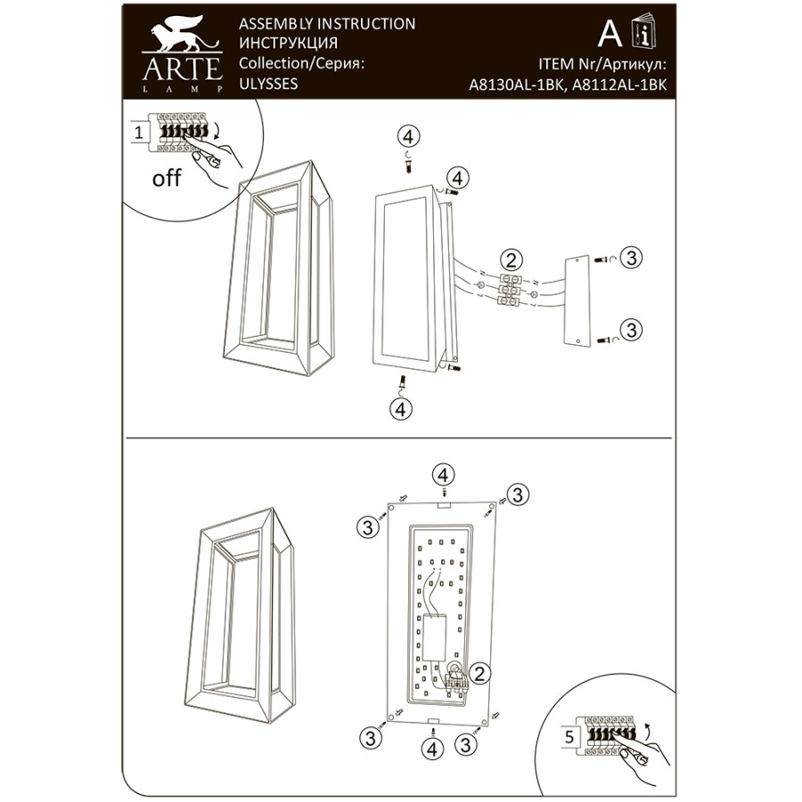 Уличный настенный светильник Arte Ulysses A8112AL-1BK