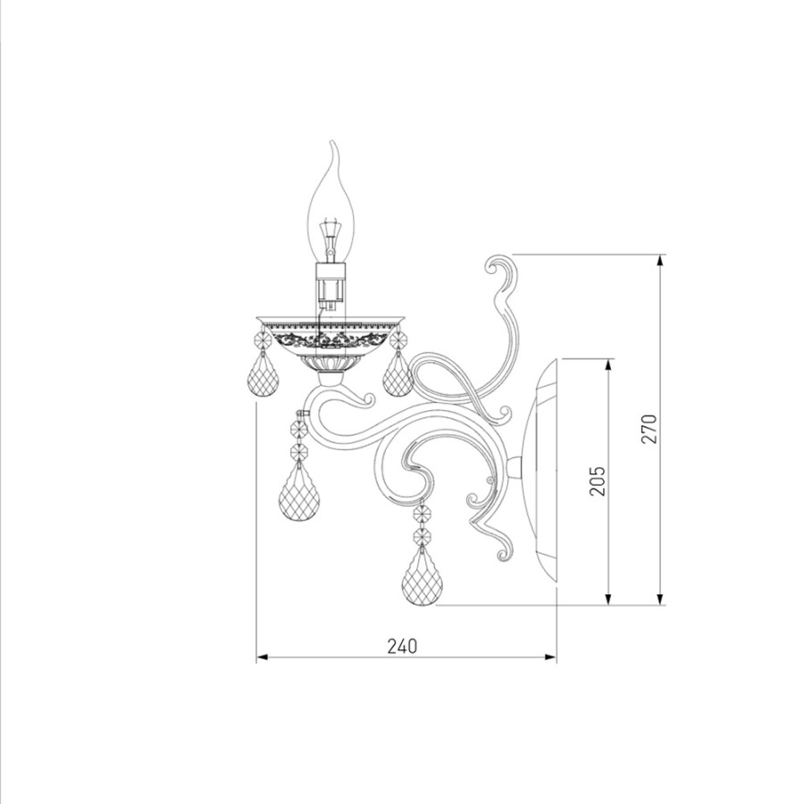 Конструкция светильника предусматривает применение 1 лампы с цоколем E14, общая мощность 60 Вт, что позволяет осветить 5 м2.