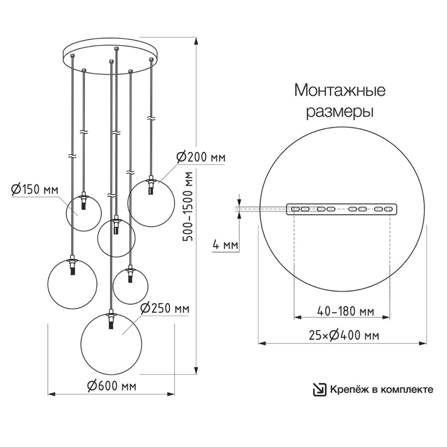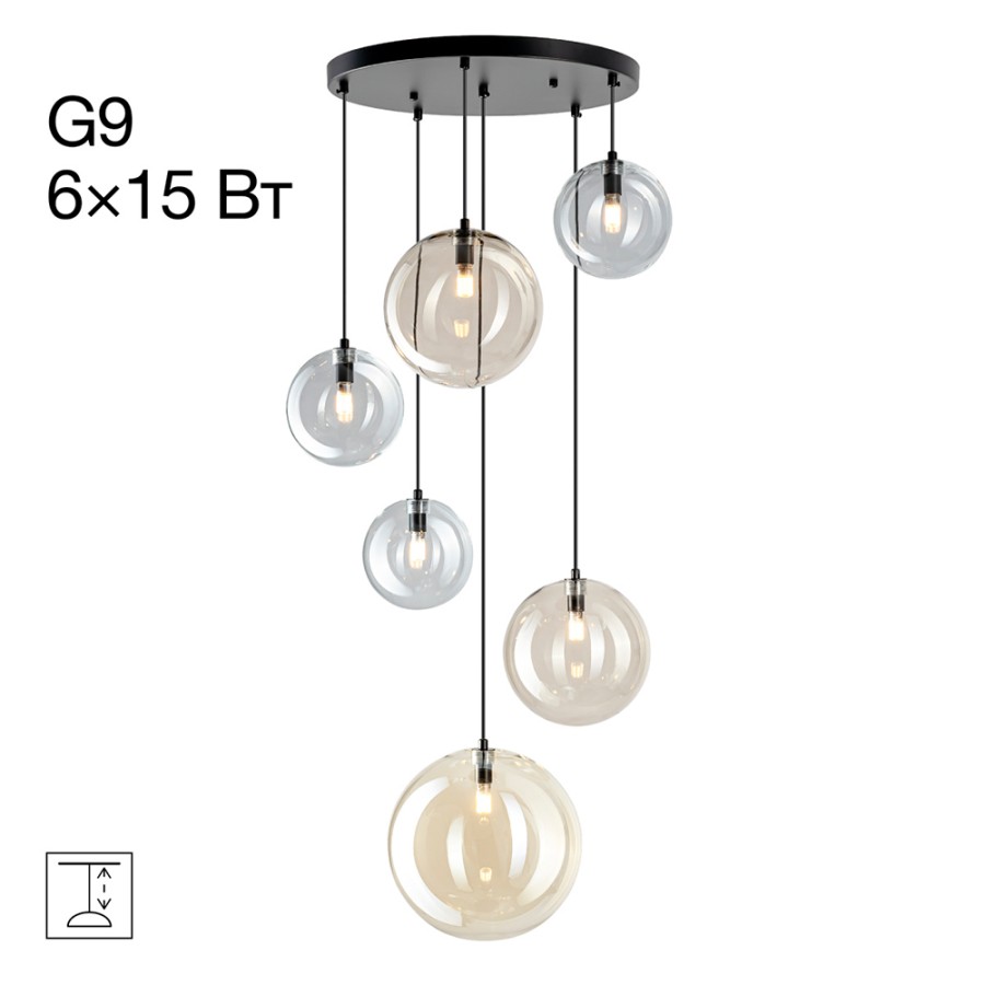 Конструкция светильника предусматривает применение 6 ламп с цоколем G9, общая мощность 90 Вт, что позволяет осветить 35 м2.