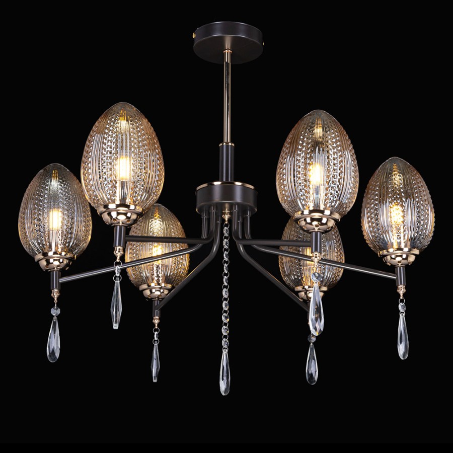 Конструкция светильника предусматривает применение 6 ламп с цоколем E27, общая мощность 240 Вт, что позволяет осветить 18 м2.