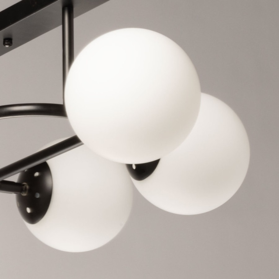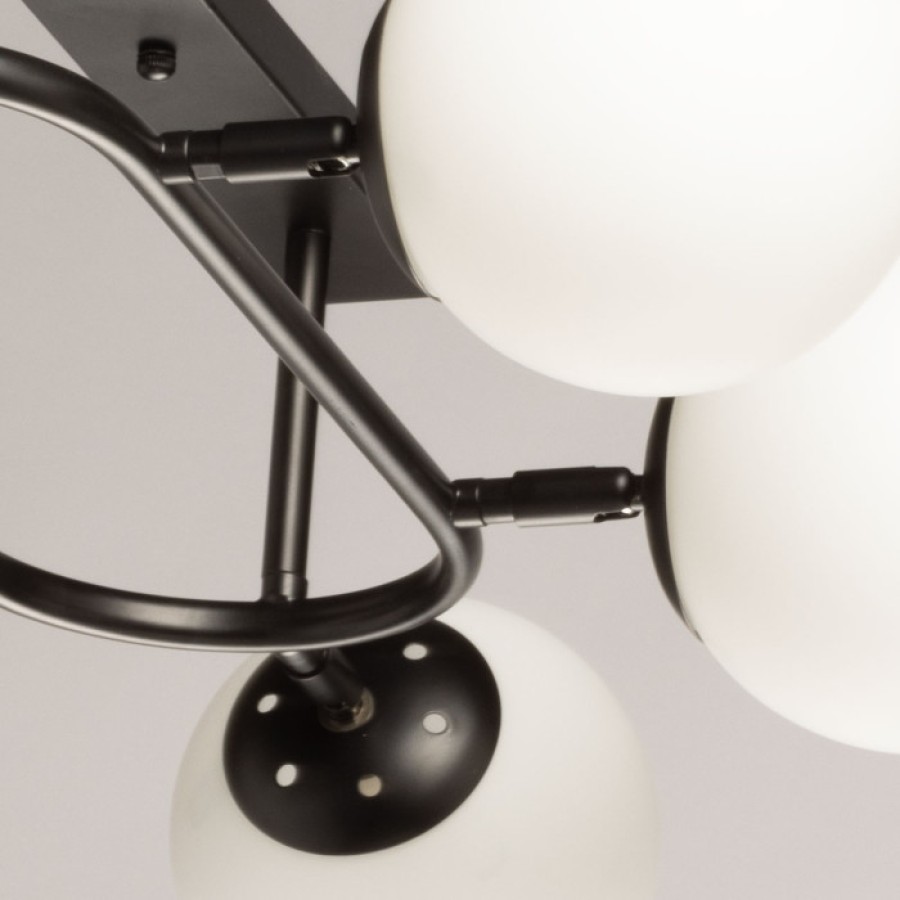 Конструкция светильника предусматривает применение 6 ламп с цоколем E27, общая мощность 240 Вт, что позволяет осветить 18 м2.