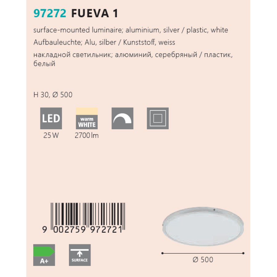 Модель Eglo Fueva 1 97272 обладает мощностью 25 Вт и может осветить 11 м2, цветовая температура - 3000k (теплый как лампа накаливания). Лампочки входят в комплект поставки. Интернет-магазин Обстановка.ру предлагает купить освещение Eglo 97272 по цене 23090 руб. с доставкой по Москве и всей России.