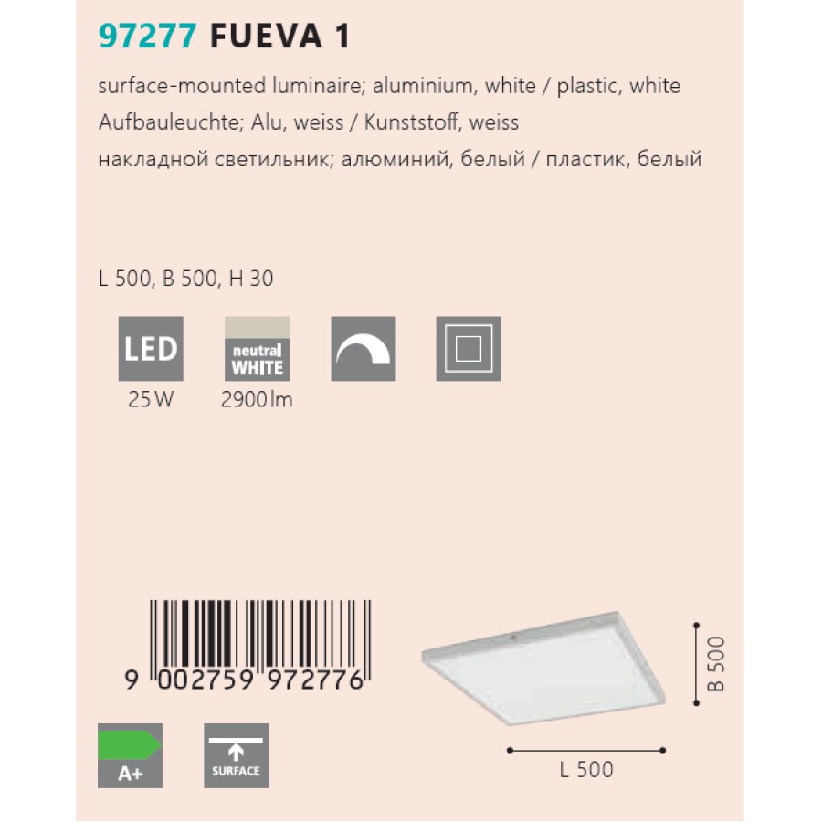 Модель Eglo Fueva 1 97277 обладает мощностью 25 Вт и может осветить 11 м2, цветовая температура - 4000k (нейтральный белый). Лампочки входят в комплект поставки. Интернет-магазин Обстановка.ру предлагает купить освещение Eglo 97277 по цене 23090 руб. с доставкой по Москве и всей России.