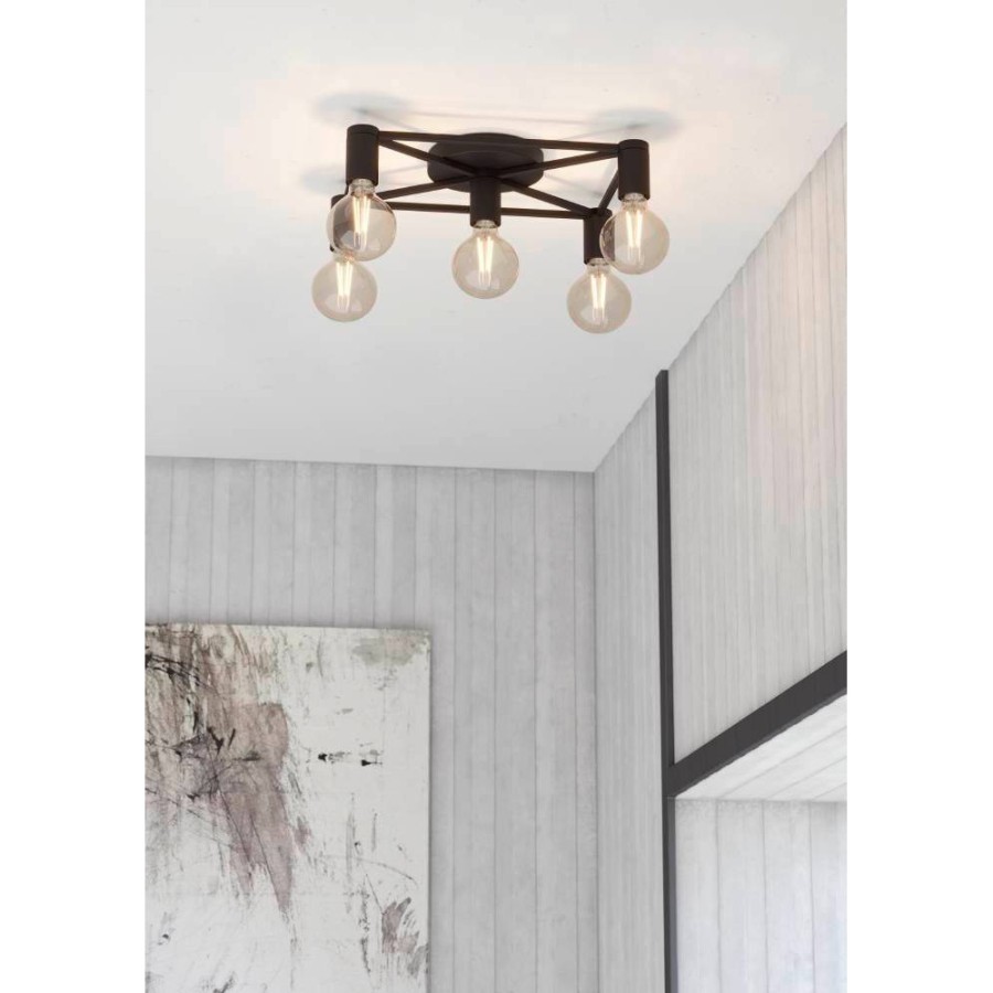 Конструкция светильника предусматривает применение 5 ламп с цоколем E27, общая мощность 200 Вт, что позволяет осветить 15 м2.