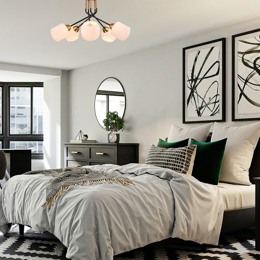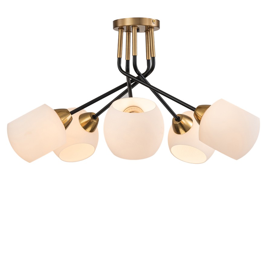 Конструкция светильника предусматривает применение 5 ламп с цоколем E27, общая мощность 200 Вт, что позволяет осветить 15 м2.