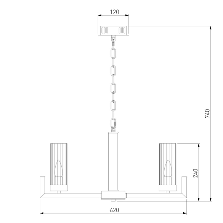 Конструкция светильника предусматривает применение 6 ламп с цоколем E14, общая мощность 240 Вт, что позволяет осветить 18 м2.
