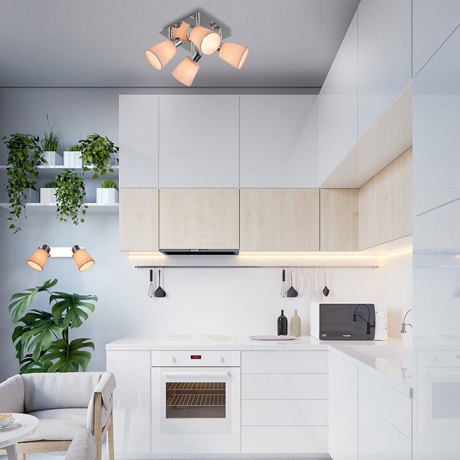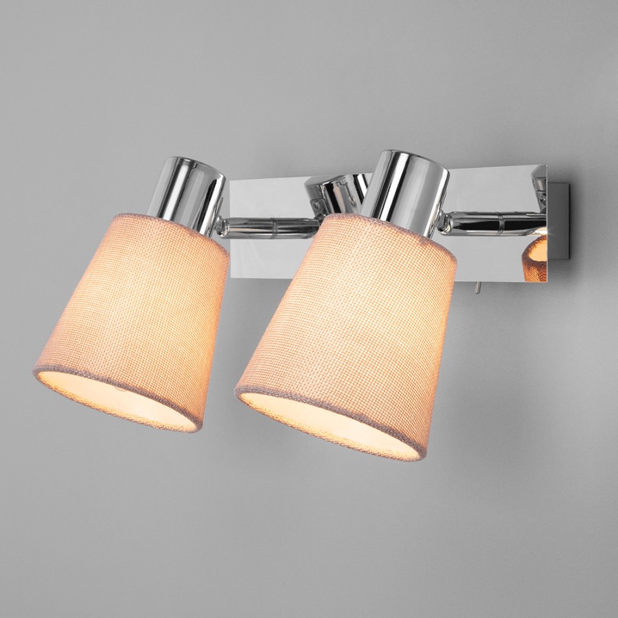 Конструкция светильника предусматривает применение 2 ламп с цоколем E14, общая мощность 80 Вт, что позволяет осветить 6 м2.