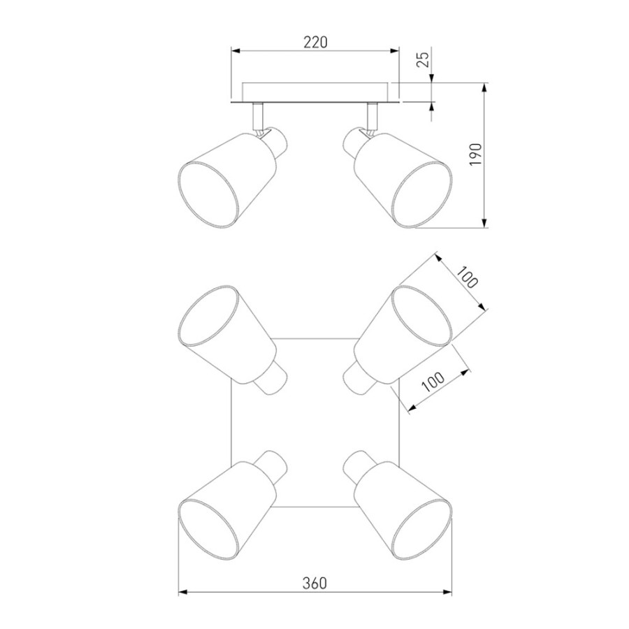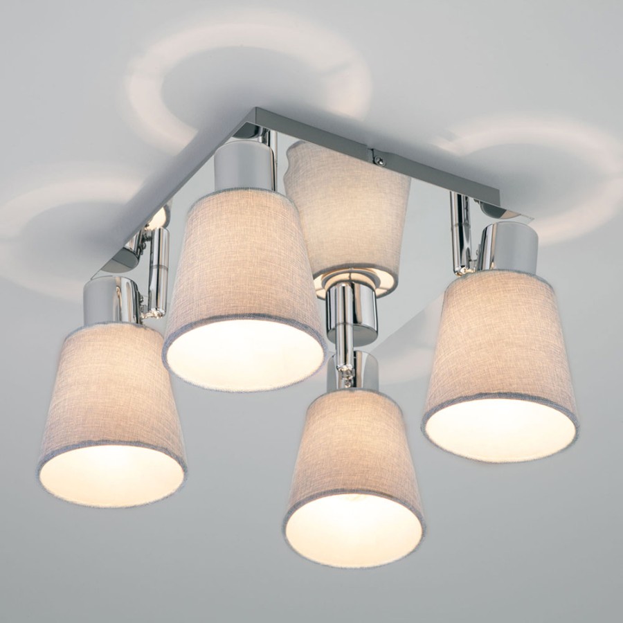 Конструкция светильника предусматривает применение 4 ламп с цоколем E14, общая мощность 160 Вт, что позволяет осветить 12 м2.
