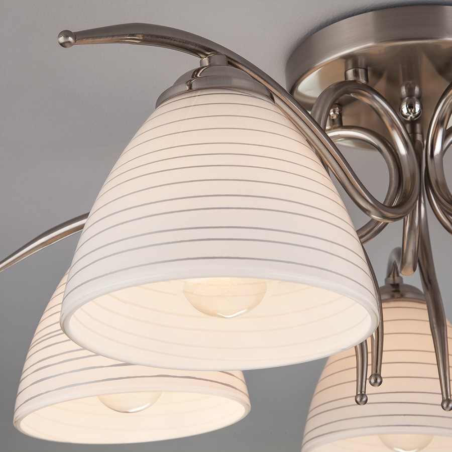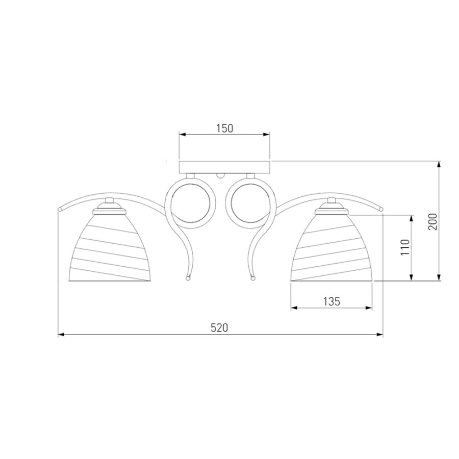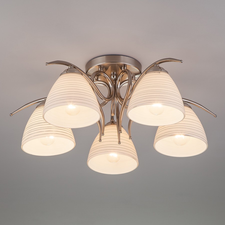 Конструкция светильника предусматривает применение 5 ламп с цоколем E27, общая мощность 300 Вт, что позволяет осветить 22 м2.