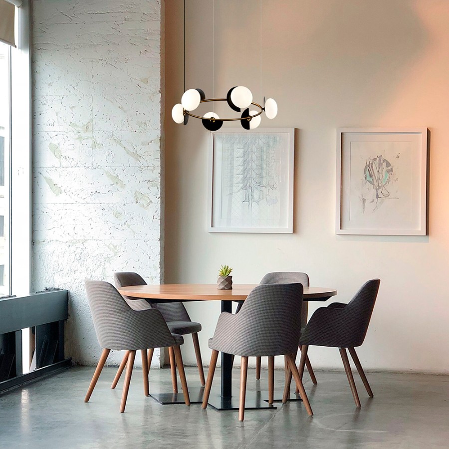 Конструкция светильника предусматривает применение 6 ламп с цоколем G9, общая мощность 150 Вт, что позволяет осветить 11 м2.