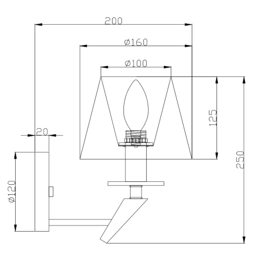 Конструкция светильника предусматривает применение 1 лампы с цоколем E14, общая мощность 40 Вт, что позволяет осветить 3 м2.