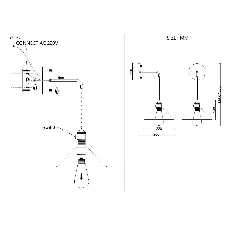 Конструкция светильника предусматривает применение 1 лампы с цоколем E27, общая мощность 60 Вт, что позволяет осветить 5 м2.