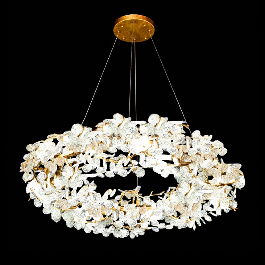 Конструкция светильника предусматривает применение 18 ламп с цоколем G9, общая мощность 720 Вт, что позволяет осветить 35 м2.