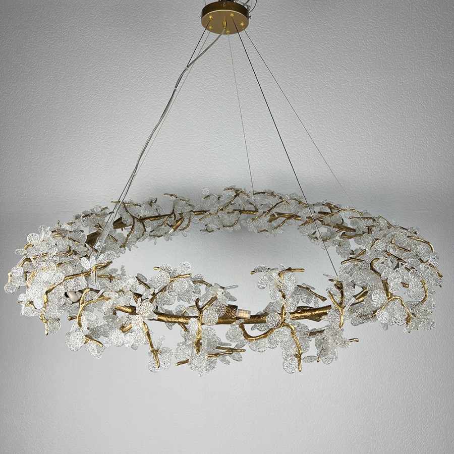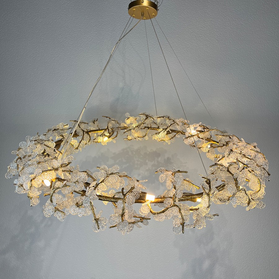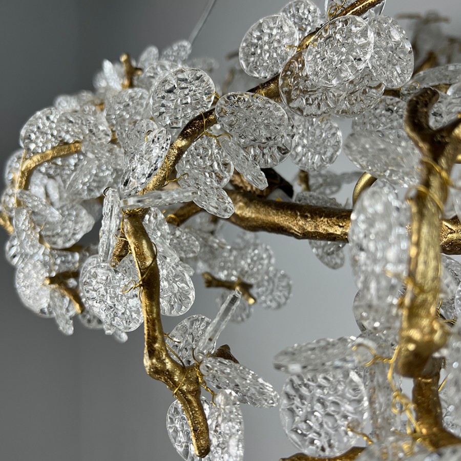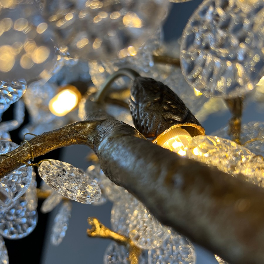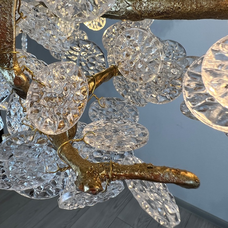 Конструкция светильника предусматривает применение 15 ламп с цоколем G9, общая мощность 600 Вт, что позволяет осветить 35 м2.