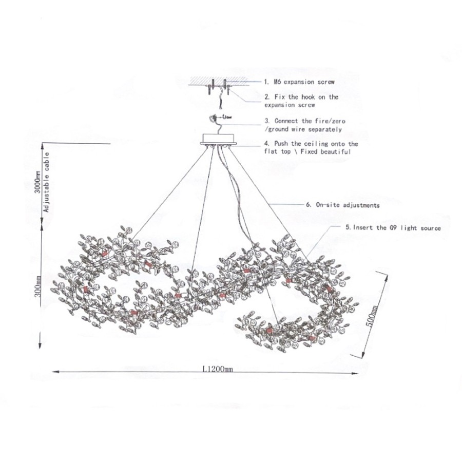 Конструкция светильника предусматривает применение 16 ламп с цоколем G9, общая мощность 640 Вт, что позволяет осветить 35 м2.