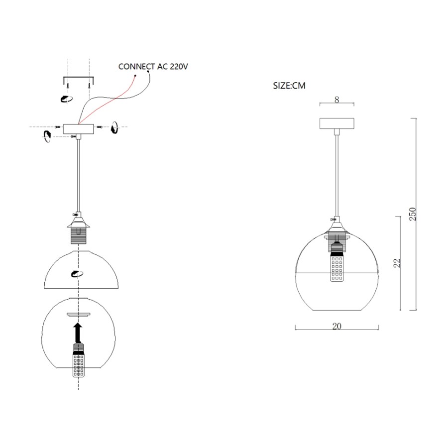 Конструкция светильника предусматривает применение 1 лампы с цоколем E27, общая мощность 60 Вт, что позволяет осветить 5 м2.