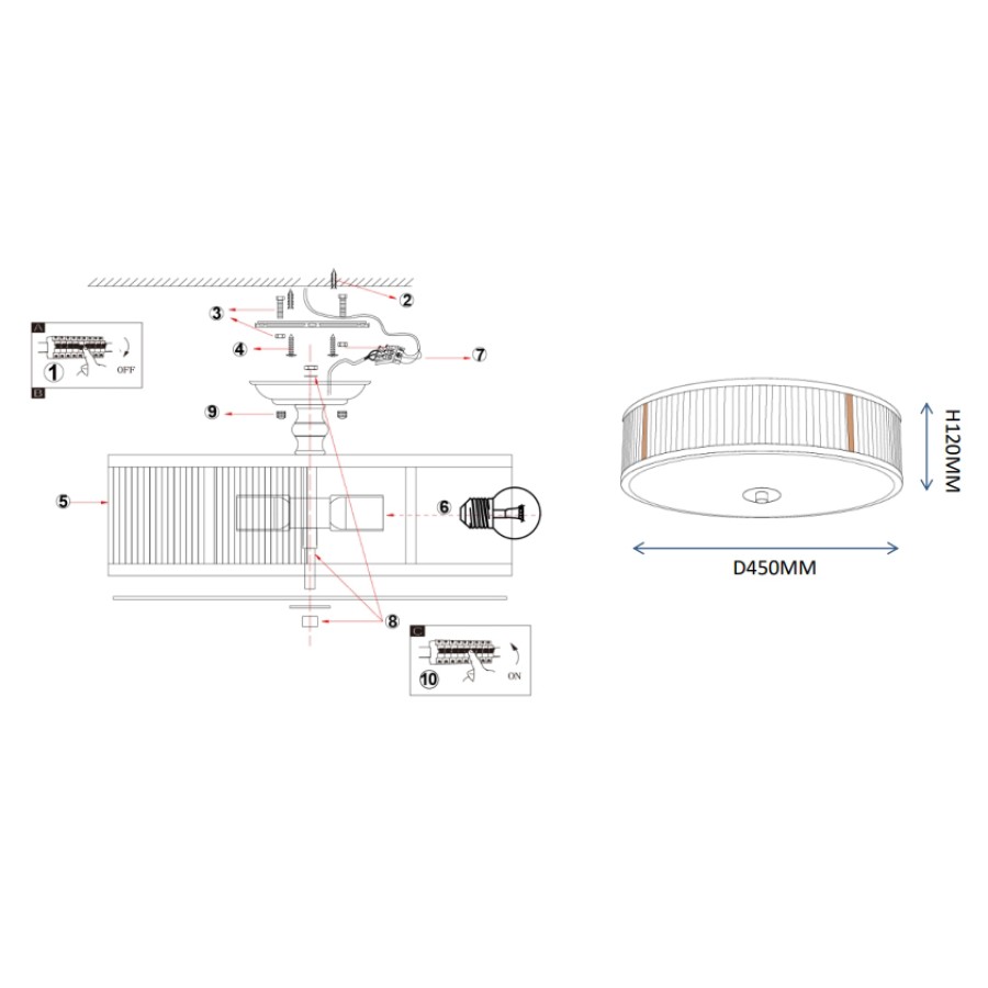Конструкция светильника предусматривает применение 4 ламп с цоколем E14, общая мощность 160 Вт, что позволяет осветить 12 м2.