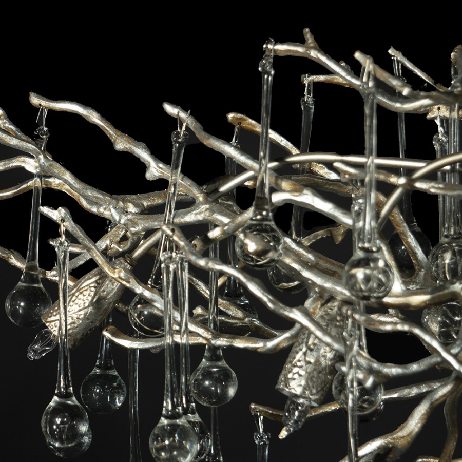 Конструкция светильника предусматривает применение 12 ламп с цоколем G9, общая мощность 60 Вт, что позволяет осветить 26 м2.