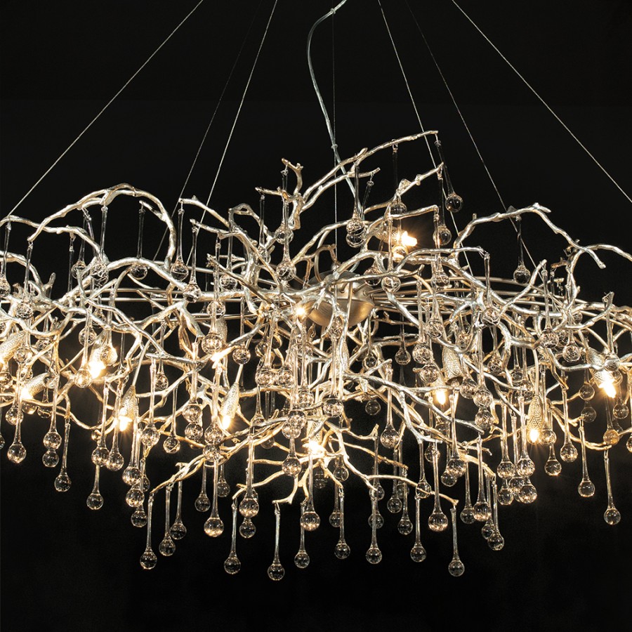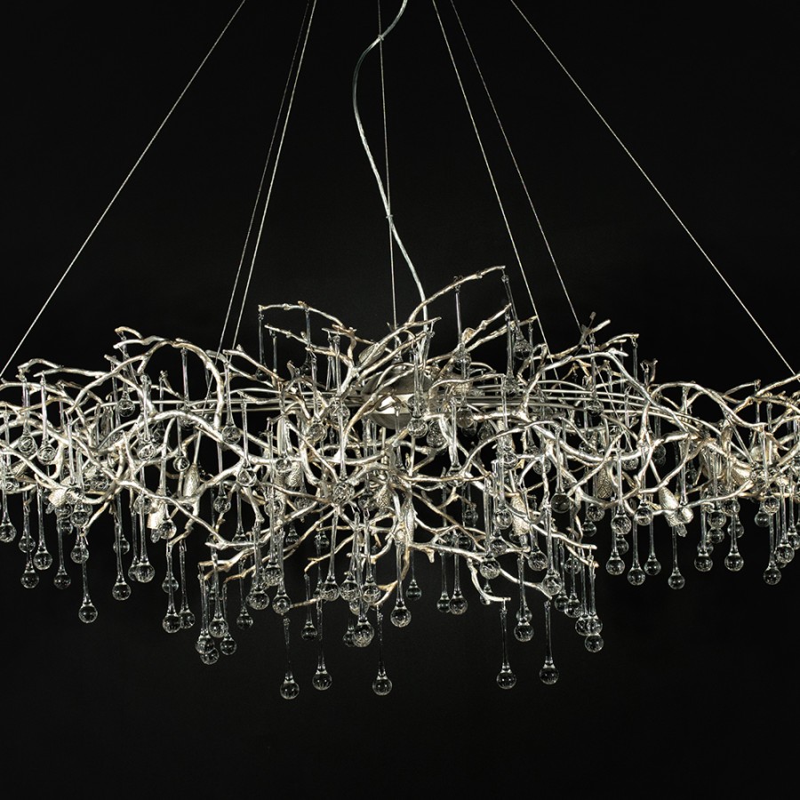 Конструкция светильника предусматривает применение 18 ламп с цоколем G9, общая мощность 90 Вт, что позволяет осветить 35 м2.