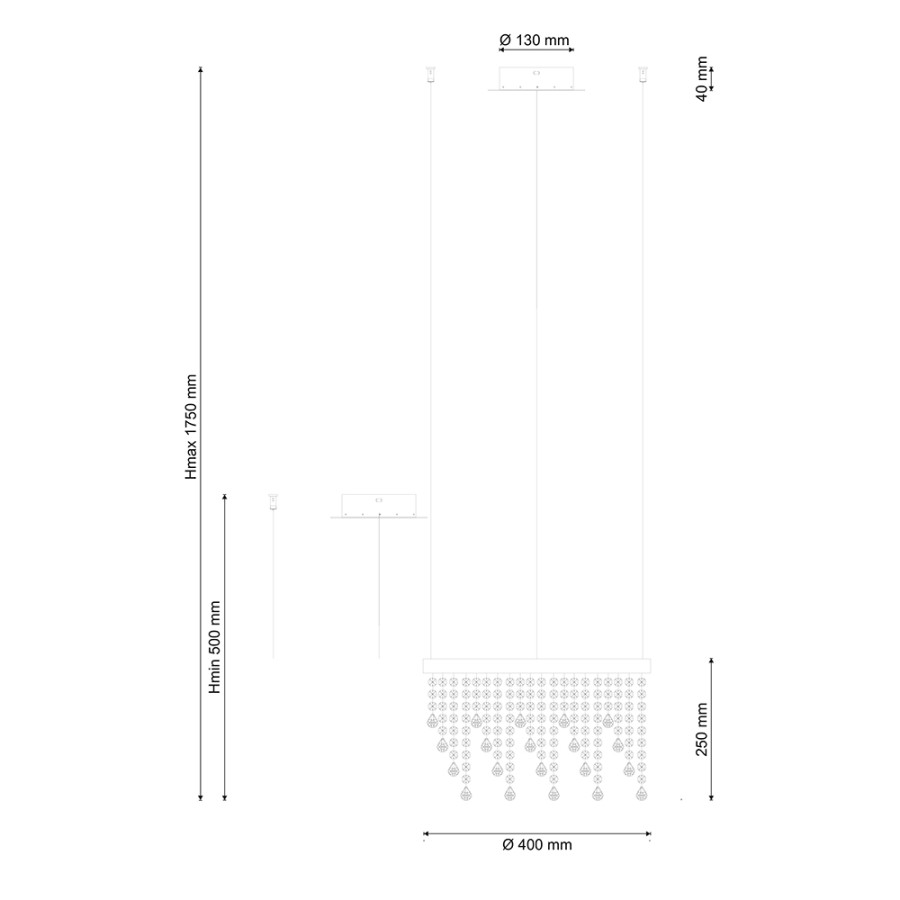 - Высота люстры без цепи