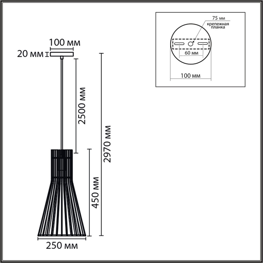 Конструкция светильника предусматривает применение 1 лампы с цоколем E27, общая мощность 60 Вт, что позволяет осветить 5 м2.