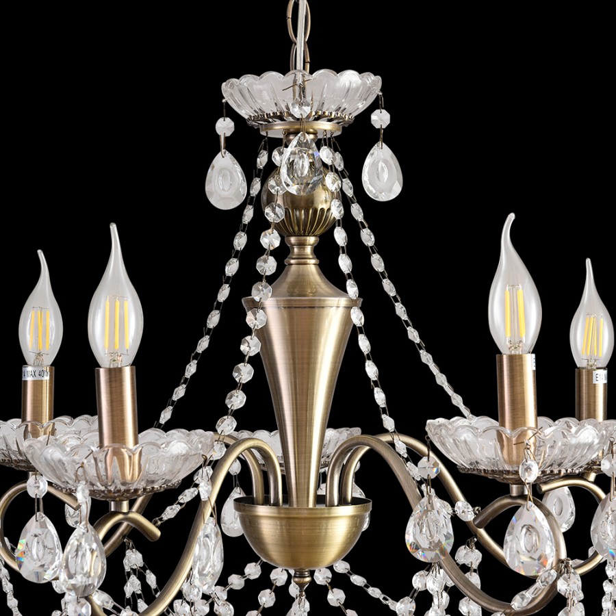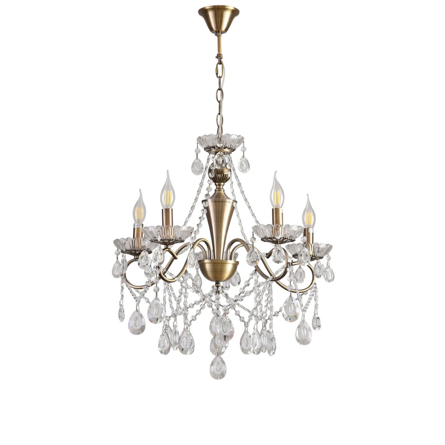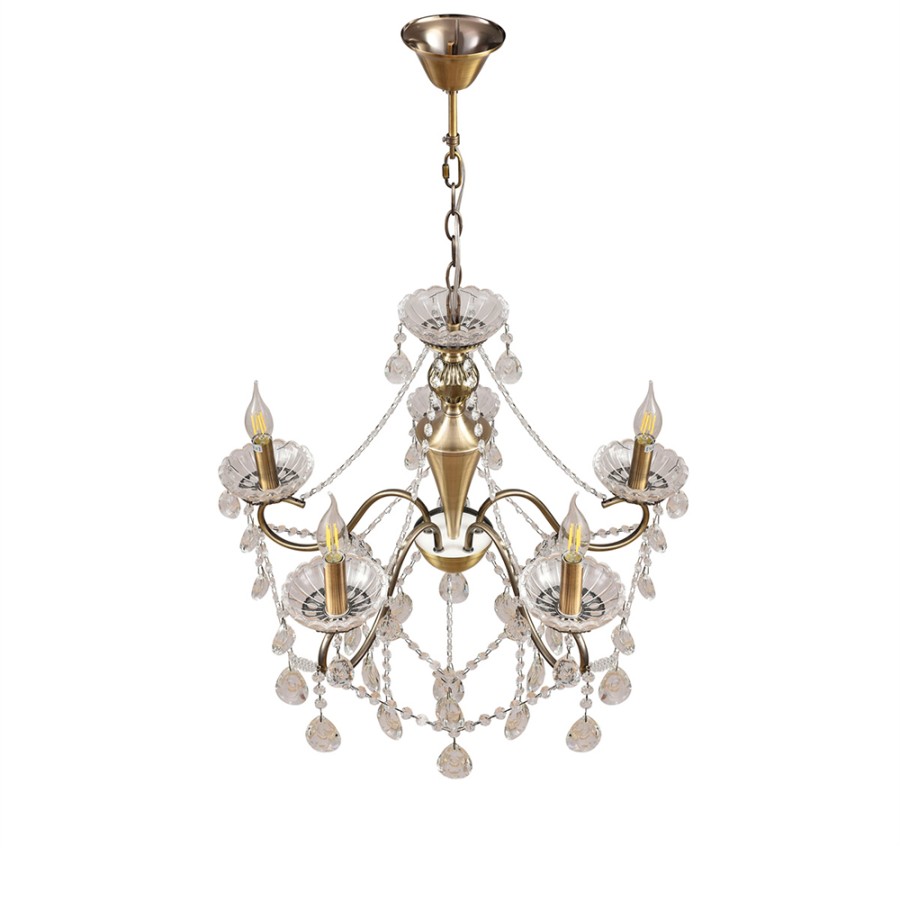 Конструкция светильника предусматривает применение 5 ламп с цоколем E14, общая мощность 200 Вт, что позволяет осветить 15 м2.