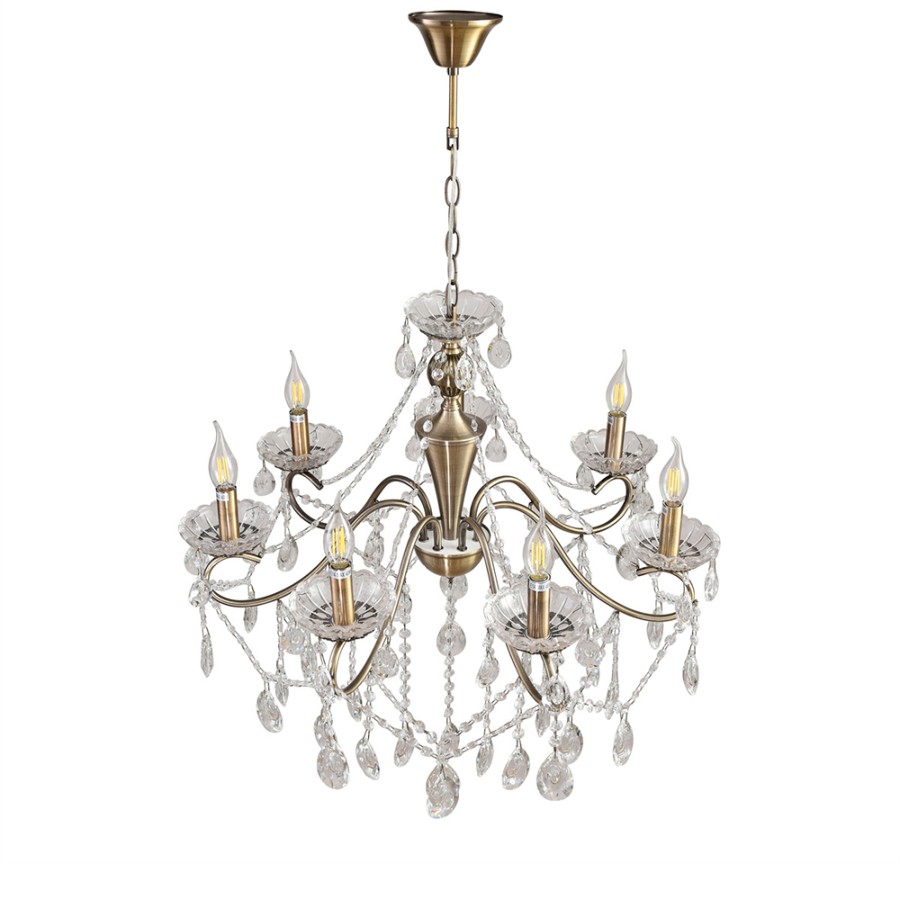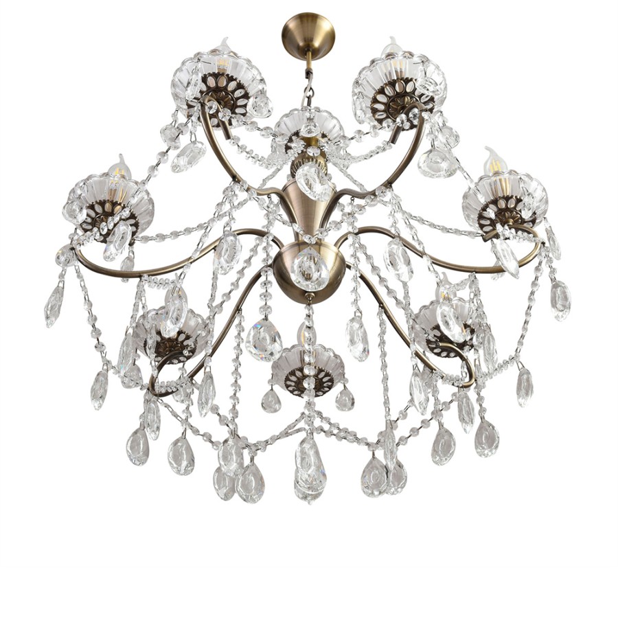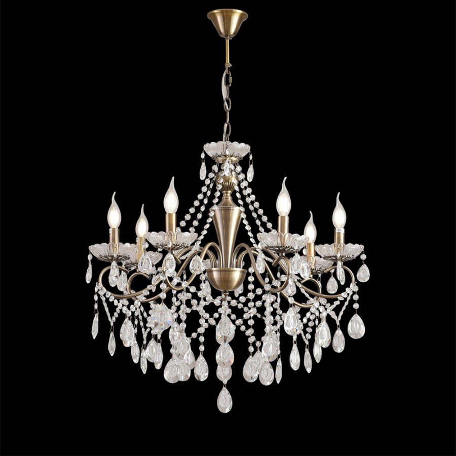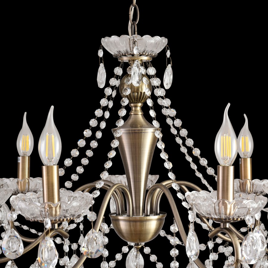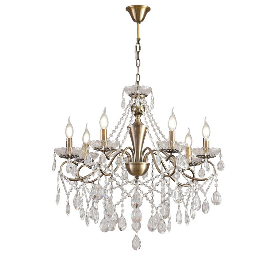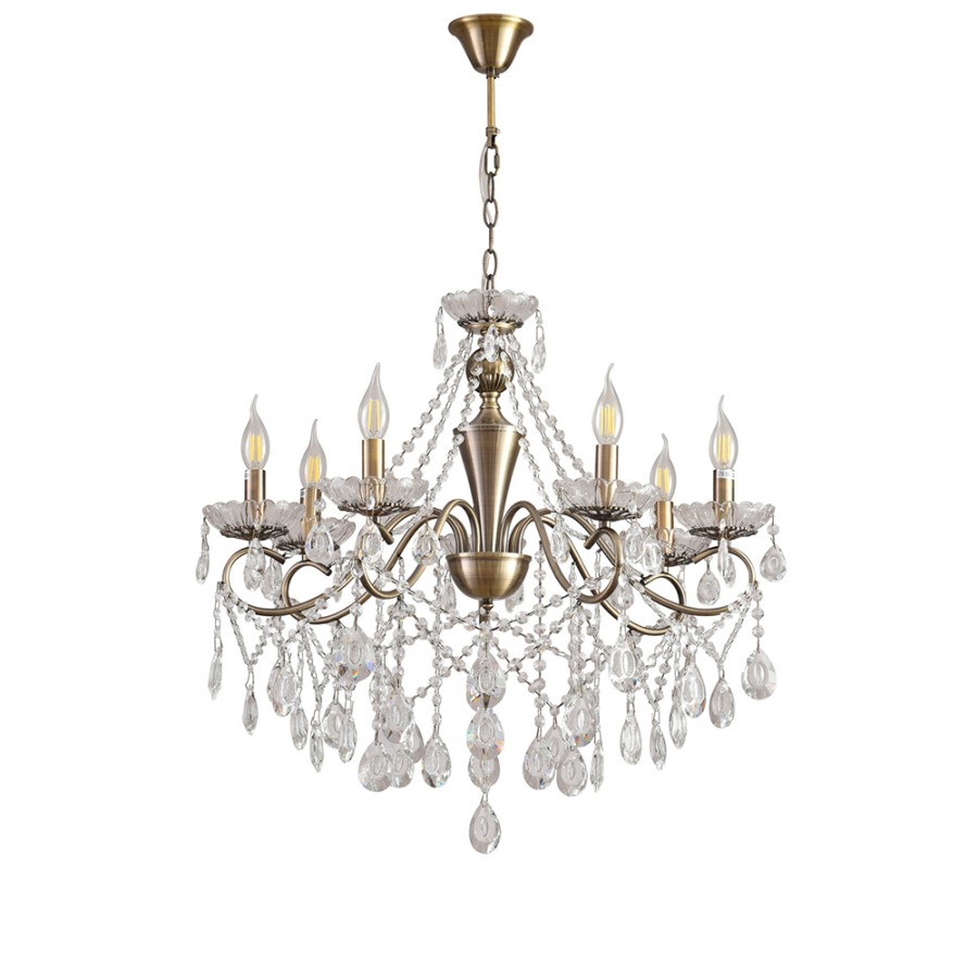 Конструкция светильника предусматривает применение 7 ламп с цоколем E14, общая мощность 280 Вт, что позволяет осветить 20 м2.