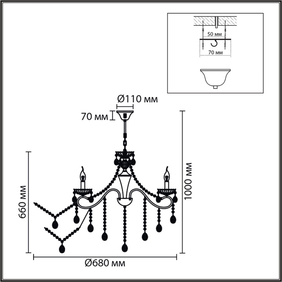- Высота люстры без цепи