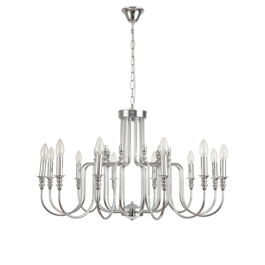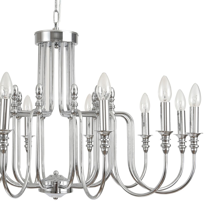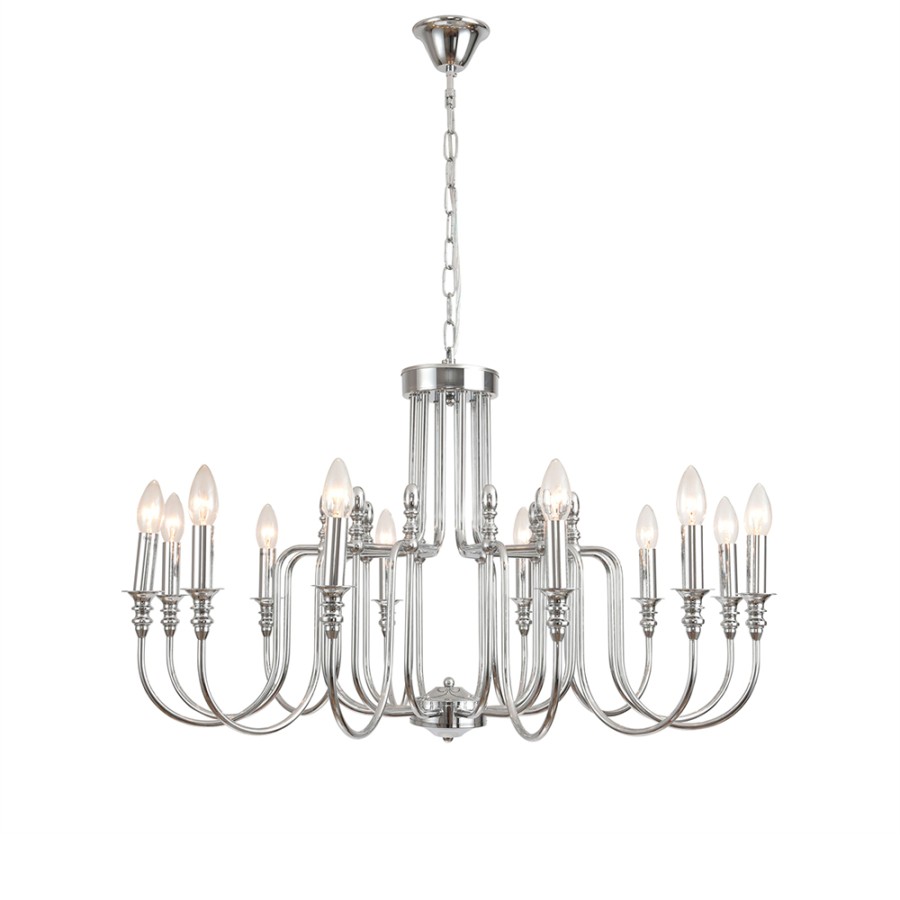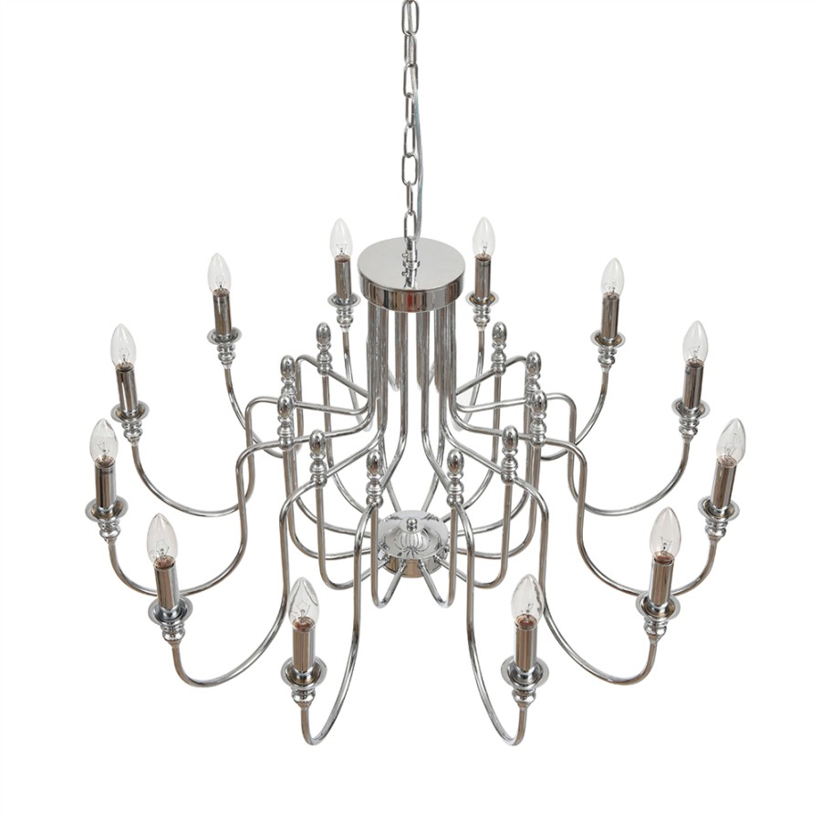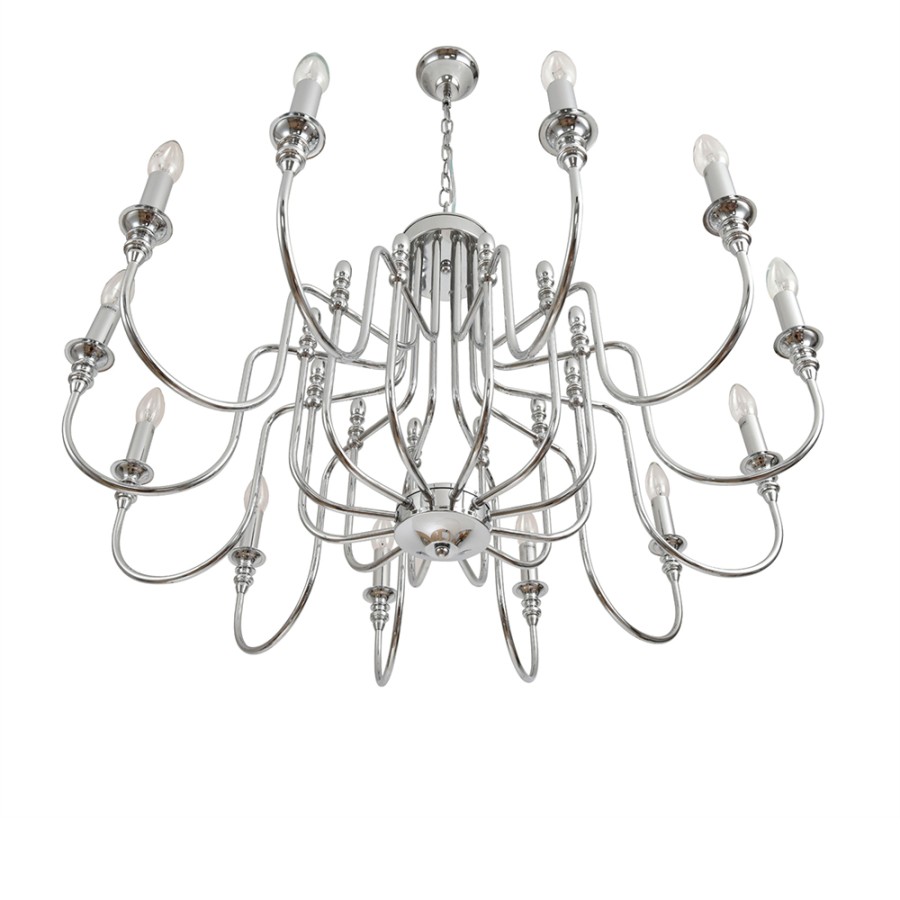 Конструкция светильника предусматривает применение 12 ламп с цоколем E14, общая мощность 480 Вт, что позволяет осветить 35 м2.