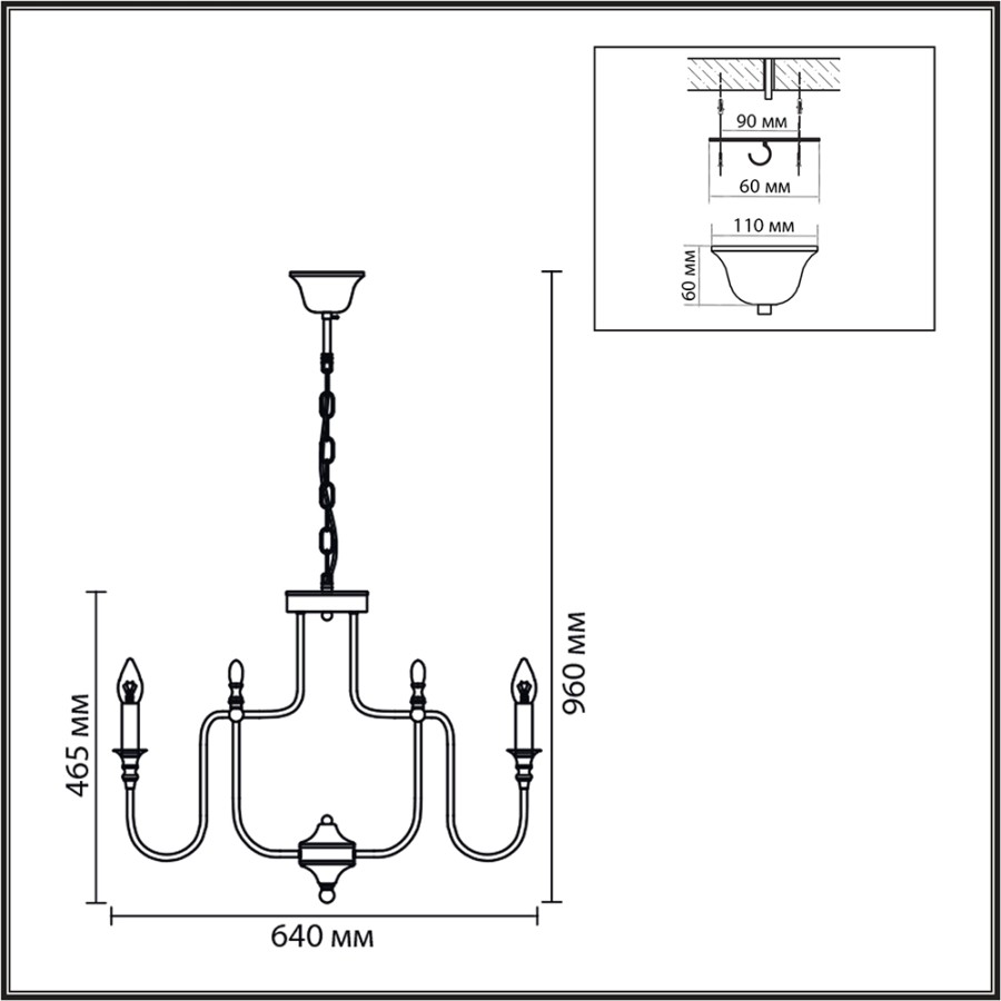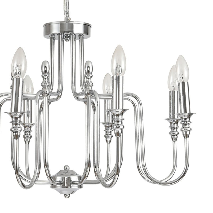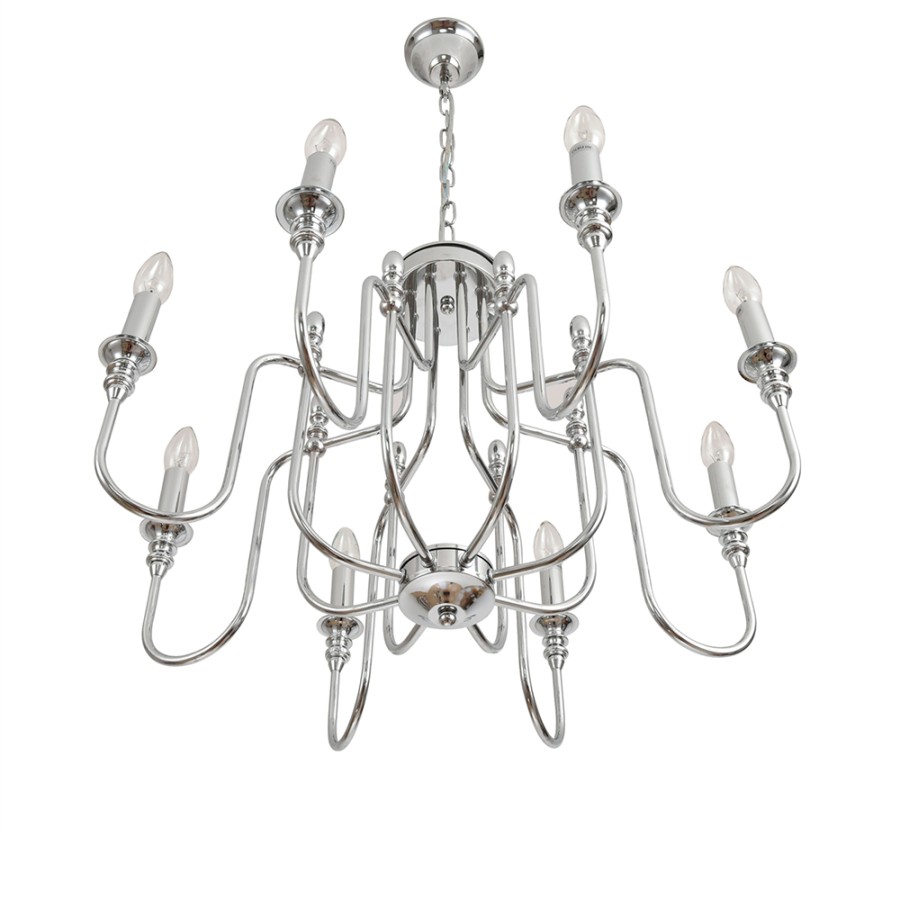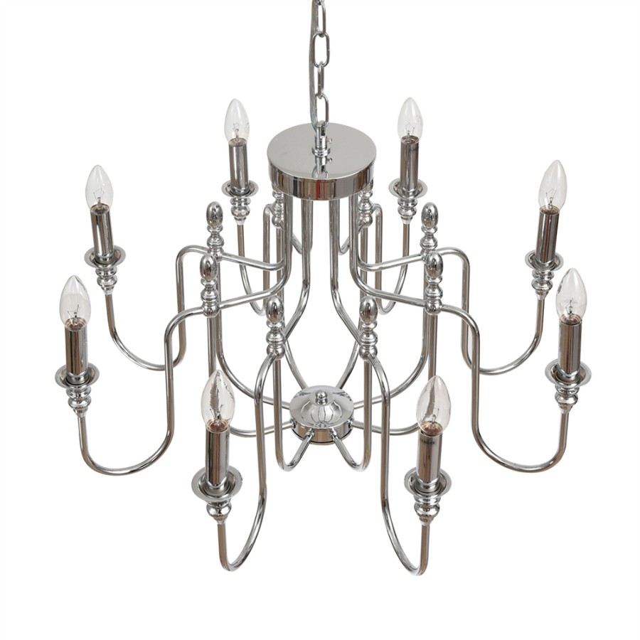 Конструкция светильника предусматривает применение 8 ламп с цоколем E14, общая мощность 320 Вт, что позволяет осветить 23 м2.