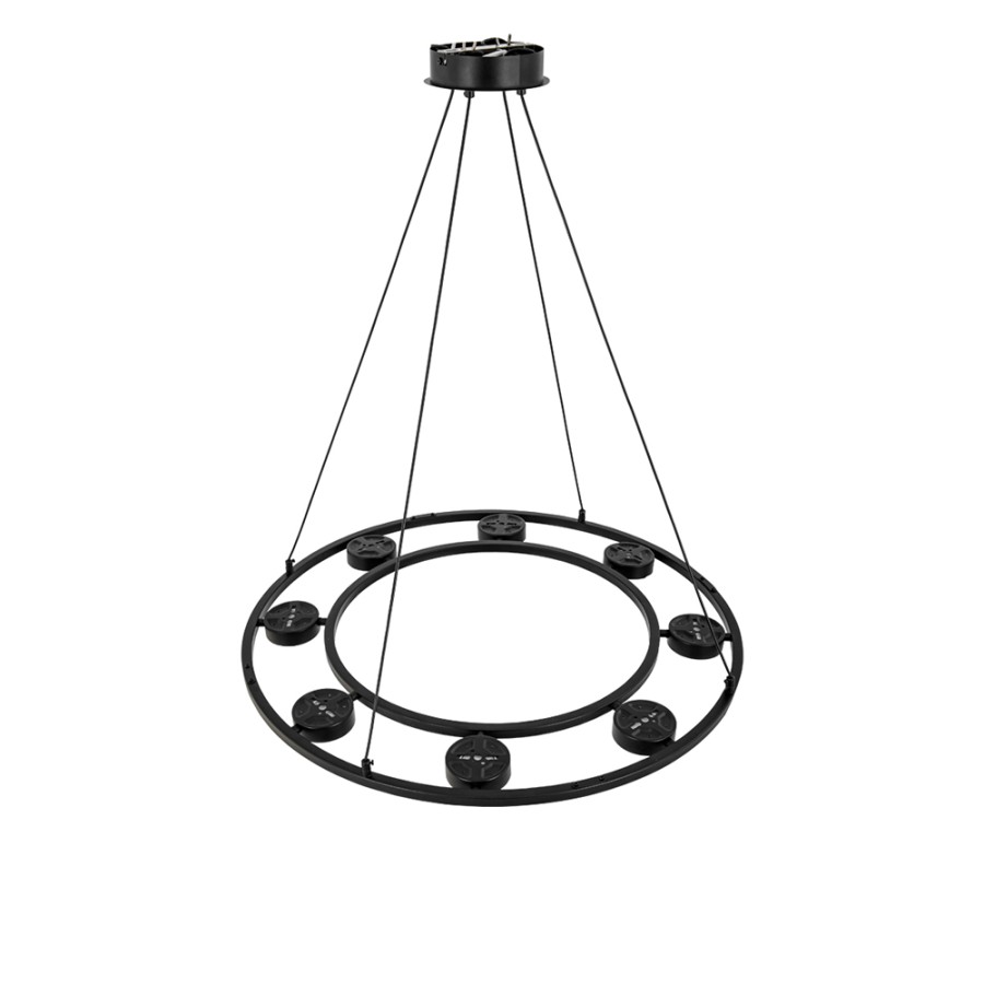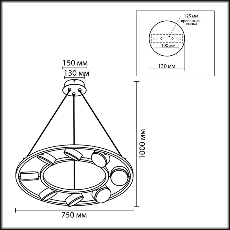 Конструкция светильника предусматривает применение 8 ламп с цоколем GX53, общая мощность 56 Вт, что позволяет осветить 24 м2.