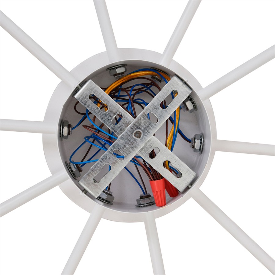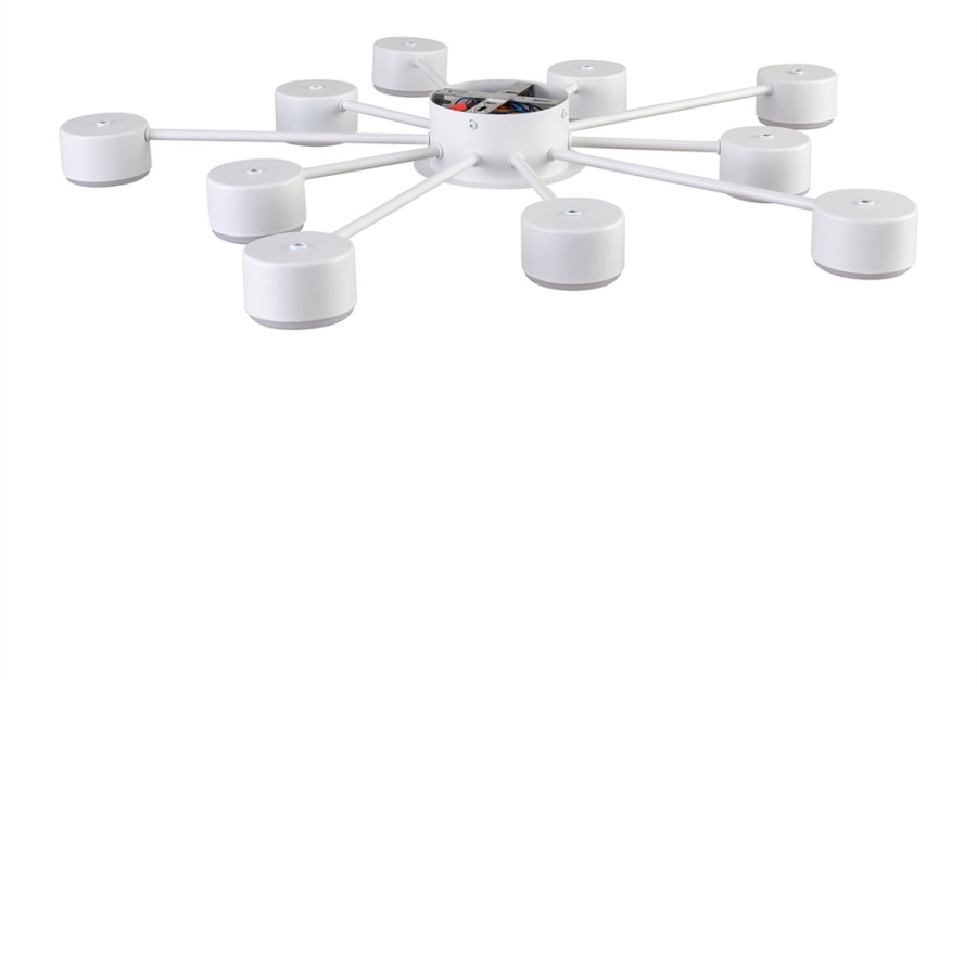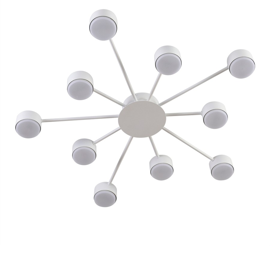 Конструкция светильника предусматривает применение 10 ламп с цоколем GX53, общая мощность 70 Вт, что позволяет осветить 30 м2.