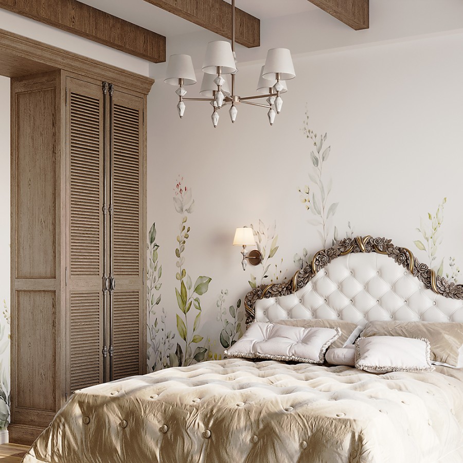 Конструкция светильника предусматривает применение 5 ламп с цоколем E14, общая мощность 200 Вт, что позволяет осветить 15 м2.