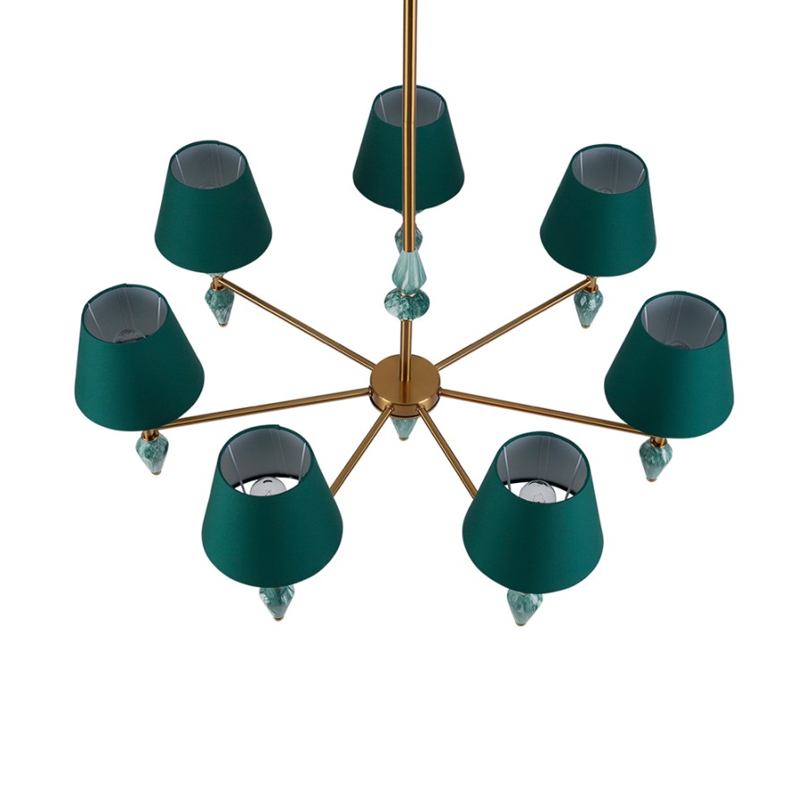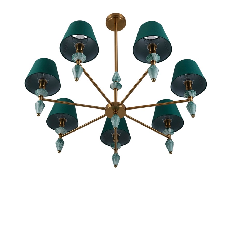 Конструкция светильника предусматривает применение 7 ламп с цоколем E14, общая мощность 280 Вт, что позволяет осветить 20 м2.