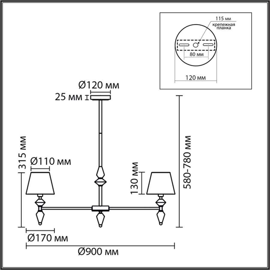 - Высота люстры без цепи