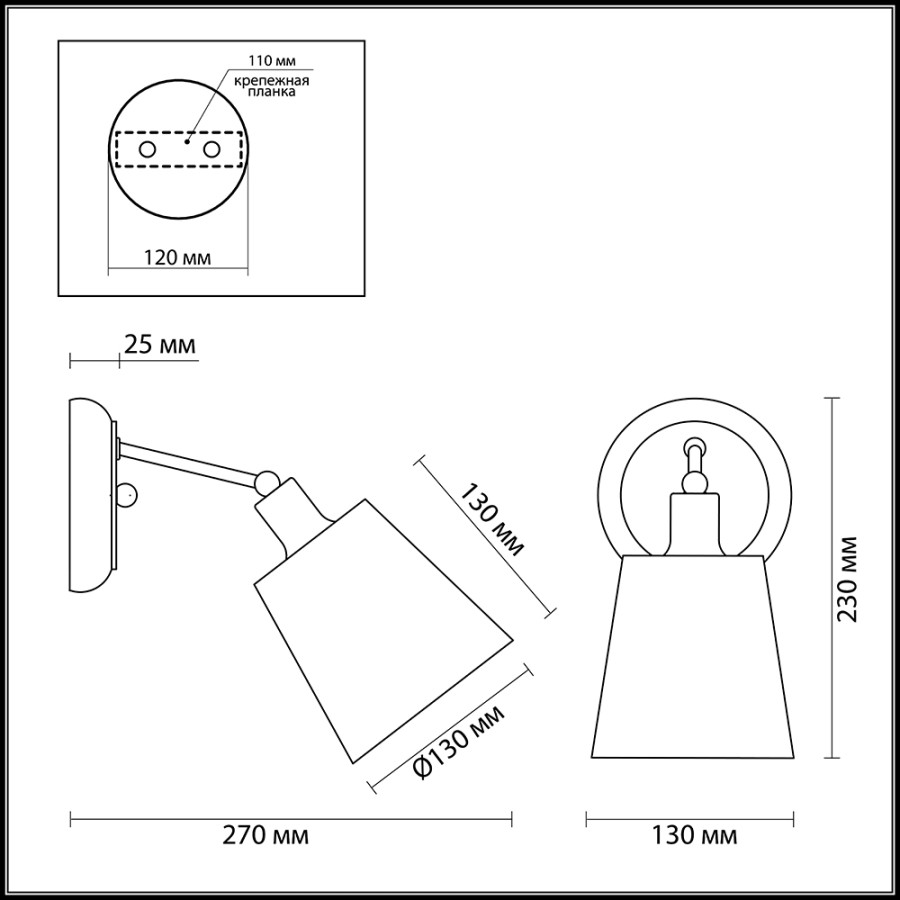 Конструкция светильника предусматривает применение 1 лампы с цоколем E14, общая мощность 40 Вт, что позволяет осветить 3 м2.